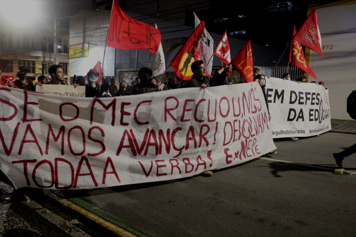 Correspondendo ao chamado da Executiva Paranaense de Estudantes de Pedagogia, em diversas cidades do estado, estudantes se ergueram em manifestações denunciando os cortes de verbas das universidades públicas e demarcando caminho contra a privatização do ensino público. Nem mesmo o recúo do MEC e a política de desmobilização da UNE foram capazes de conter o movimento idependente e combativo, que demarcou por continuar a luta e exigir a restituição total do orçamento.