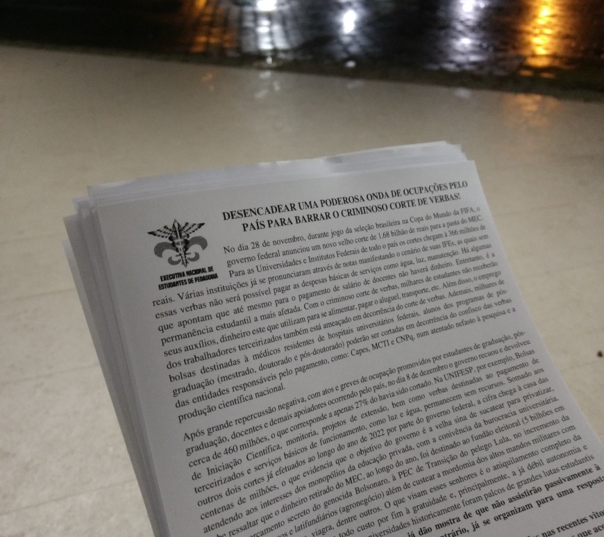 O vitorioso 5º Encontro Sul-Mato-Grossense de Estudantes de Pedagogia aconteceu nos dias 05, 06 e 07 de Dezembro no período da noite no anfiteatro da Universidade Estadual do Mato Grosso do Sul em Dourados com o tema “Abaixo o corte de verbas e a privatização das universidades! Revogação imediata da BNC-FP e do Novo Ensino Médio! Pelo direito de estudar e aprender!” No dia 05 … Continuar lendo [MS] Viva o vitorioso 5º Encontro Sul-Mato-Grossense de Estudantes de Pedagogia!