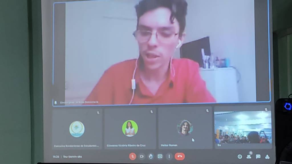 Após a oficina, um lanche foi servido aos estudantes e a plenária retornou com a mesa de situação política nacional, tendo o diretor chefe do Jornal A Nova Democracia como palestrante. Victor saudou o evento, e iniciou sua análise caracterizando o imperialismo que vivemos atualmente em que a acumulação progressiva de capital por parte de um pequeno grupo, alastra a miséria perante a grande maioria da população. Este processo, contudo, acirra as contradições da massa com seus Estados e gera a consolidação de grupos de populares que, apropriados das lutas históricas das classes oprimidas, se rebelam e respondem de forma combativa a crise institucional e política. Bolsonaro, se aproveitando disso, realizou um discurso contrário a burocracia, democracia burguesa e a política partidária, sem largar em nenhum momento tais instrumentos. Compreender agora que Lula seria uma nova esperança, é justamente, esquecer as contradições de classes que permanecem determinando as contradições políticas, que são temidas constantemente pelo exército – como coluna vertebral do Estado. As perspectivas combativas, tem como vanguarda, justamente a juventude e seus levantes, como ocorreu em 2013, para que haja um desencadear de lutas populares, no campo e nas cidades, no sentido de conquistar uma nova democracia, sobre o cadáver da anterior.