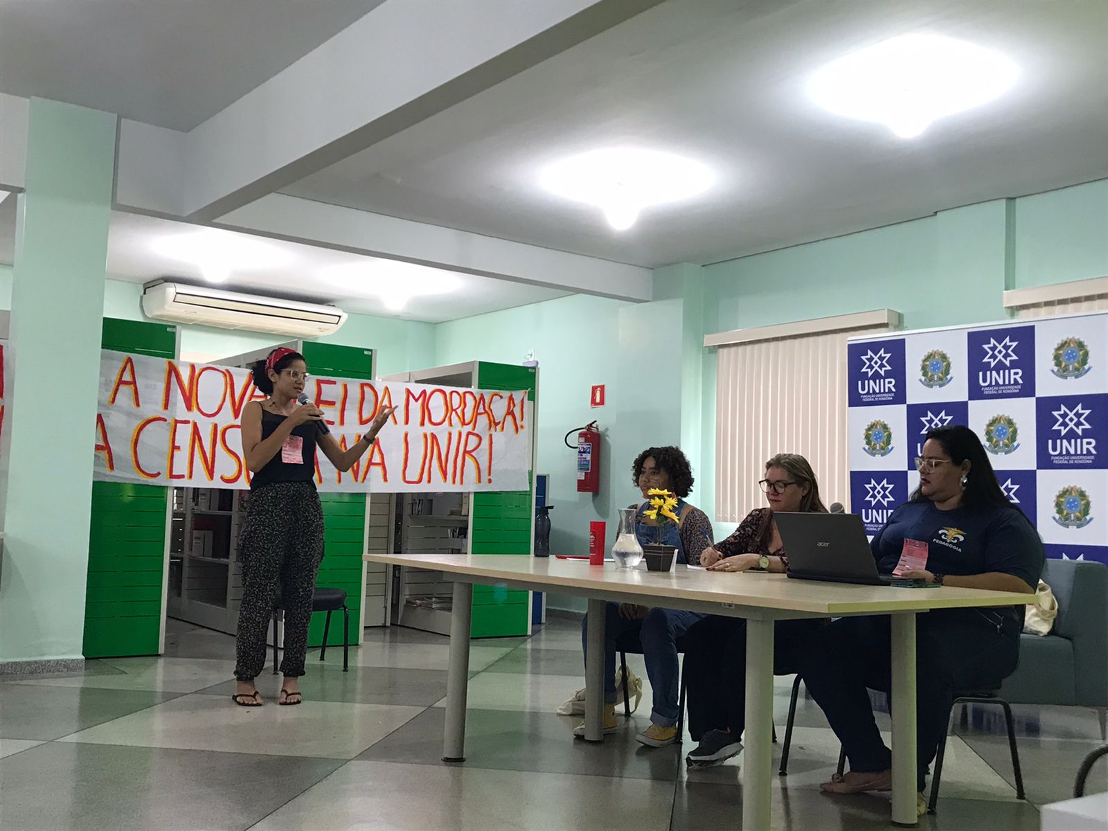 Na manhã do dia de encerramento, a última palestra do evento, intitulada “Pedagogia Socialista” foi realizada com a Profª Drª Marilsa Miranda de Souza como palestrante, que fez uma retomada histórica das experiências mais avançadas no que diz respeito à educação que forme sujeitos que entendem como o mundo funciona de fato, a forma como as crianças são ensinadas isoladas da realidade, sem entender os problemas da sociedade, confusas e sem pertencimento a sua classe. Explicou que muitas vezes os educadores criticam as pedagogias liberais, pós-modernas, tecnicistas, mas muitas vezes não apresentam uma pedagogia como alternativa a essas, e que o objetivo da mesa naquele contexto era importantíssimo. Após a fala, várias intervenções foram feitas, inclusive por uma funcionária da biblioteca do campus que saudou a palestrante e parabenizou os estudantes em luta contra a chamada “lei da mordaça” na UNIR. Disse que estava presente no evento de celebração dos 40 anos da UNIR e que viu a manifestação dos estudantes no evento com uma das faixas que estava pendurada na plenária e dizia “contra a lei da mordaça” e “abaixo a censura na UNIR”. A funcionária disse que a Universidade era isso mesmo, espaço do livre pensar, das manifestações culturais, políticas, e que por isso os estudantes e organizadores do evento estavam de parabéns.