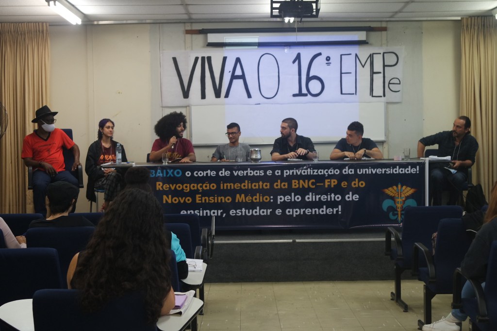 A mesa 2 iniciou-se a tarde, com a presença do professor do curso de licenciatura em física da UFOP Cassiano Pagliarini, do professor da rede estadual de Minas Gerais Luís Otávio e do companheiro da ExMEPe Gustavo. O professor Cassiano abriu com uma crítica a partir da pedagogia histórico-crítica as reformas curriculares, destacando em sua fala o desenvolvimento da escola na sociedade e o papel central da transmissão dos conteúdos científicos. Criticou a BNCC, BNC, Novo Ensino Médio pelo papel de negação de acesso a esse conhecimento. Logo, o professor Luís Otávio trouxe contribuições ao debate a partir de sua experiência com o “Ensino Médio de Tempo Integral” nas escolas da rede estadual de ensino, apontando a redução de conteúdos nas disciplinas clássicas e aumento do número de disciplinas na grade curricular, como “projeto de vida”, “empreendedorismo”. Trouxe a triste realidade de evasão das escolas devido ao aumento da carga horária, as dificuldades do professor com essas novas disciplinas que não possuem ementa. Por fim, o companheiro da ExMEPe trouxe ao debate as principais implicações da resolução 02/2019 para o curso de pedagogia e licenciaturas, o esvaziamento da formação, a fragmentação do curso de pedagogia, e contrapôs a medida a concepção do pedagogo unitário desenvolvida pela ExNEPe. Também trouxe um histórico de lutas da ExNEPe em defesa do curso de pedagogia, passando pelas lutas em 2006 contra as DCN’s do gerenciamento petista, e as lutas mais atuais contra a resolução 02/2019 durante a pandemia, destacadamente a criação dos comitês sanitários de defesa popular por estudantes em bairros pobres e vilas, e o dia 15 de setembro com manifestações da ExNEPe por todo o país. Também trouxe a experiência em curso do Grupo de Trabalho de professores e estudantes da Faculdade de Educação da UFMG que tem feito debates sobre o tema, impulsionando a luta pela revogação da medida. Houveram várias intervenções denunciando as reformas, de professores trazendo as consequências nefastas do Novo Ensino Médio para as escolas.