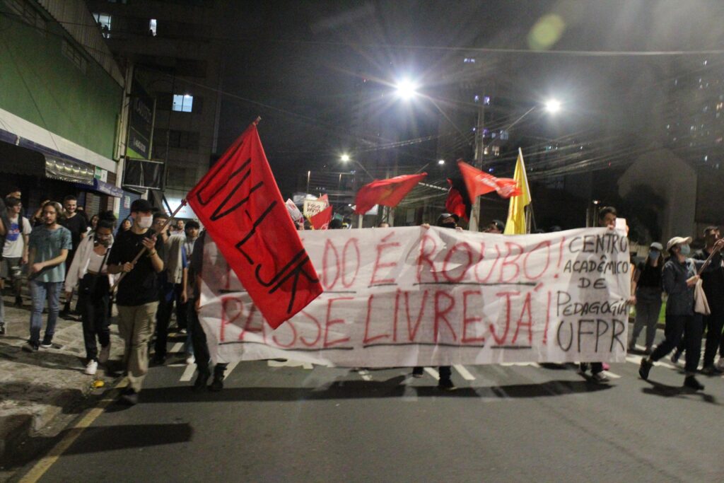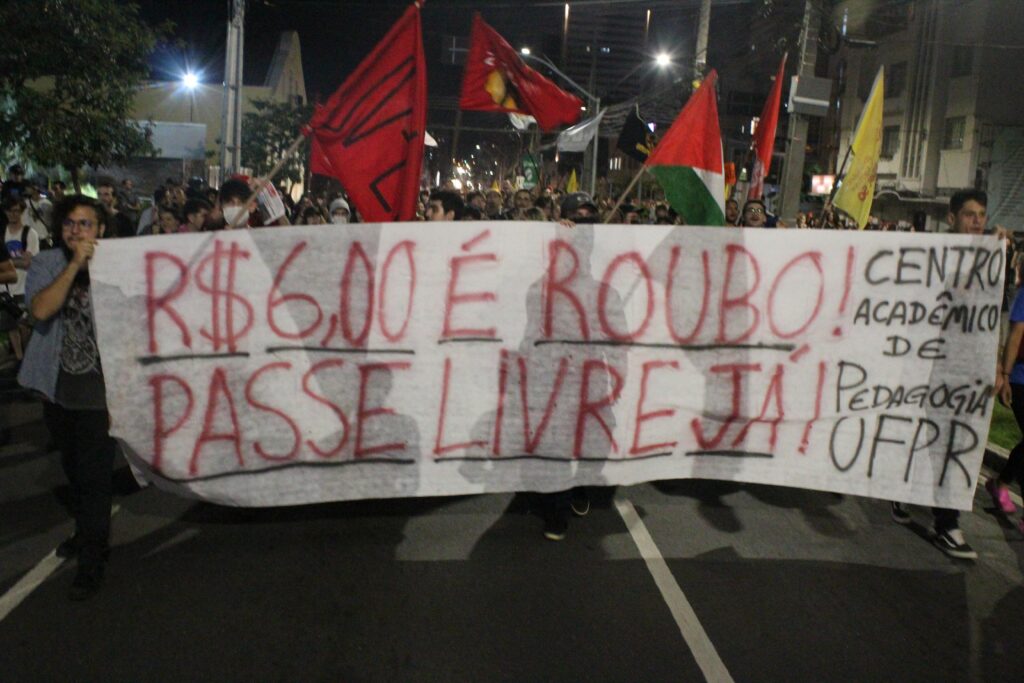 No dia 2 de março, no Centro de Curitiba (PR), mais de mil estudantes e trabalhadores mobilizaram-se em uma manifestação contra o aumento da tarifa de ônibus para R$ 6,00. Exigindo o passe livre, os manifestantes tomaram as ruas e canaletas – vias expressas de circulação dos ônibus biarticulados – da capital parananense, passando por locais altamente frequentados por usuários do sistema de transporte público.