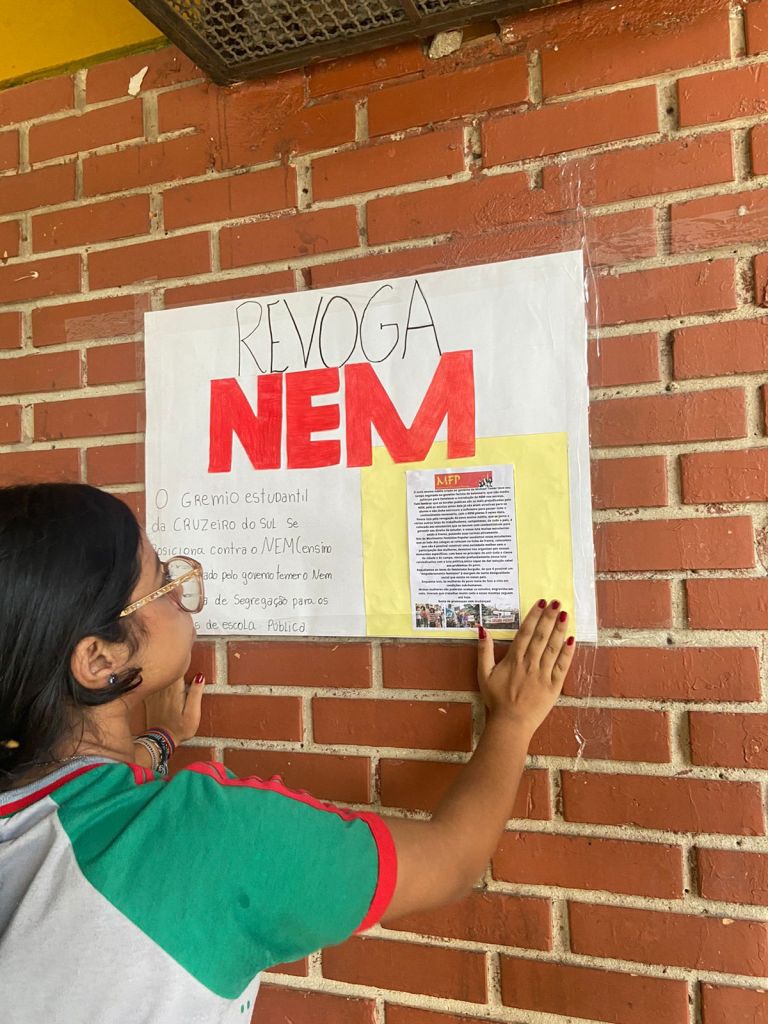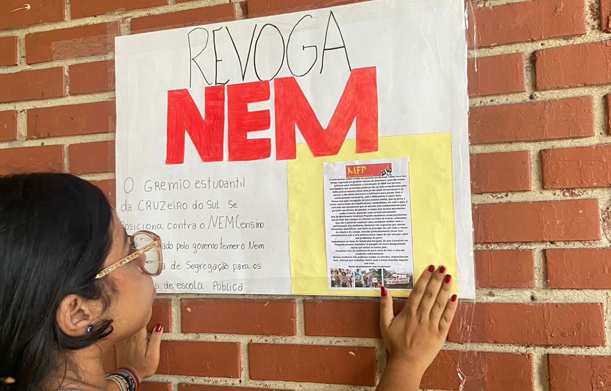 “O grêmio estudantil da Cruzeiro do Sul posiciona contra o NEM (Novo Ensino Médio), criado pelo governo TEMER o NEM é uma forma de segregação para os estudantes de escola pública”.