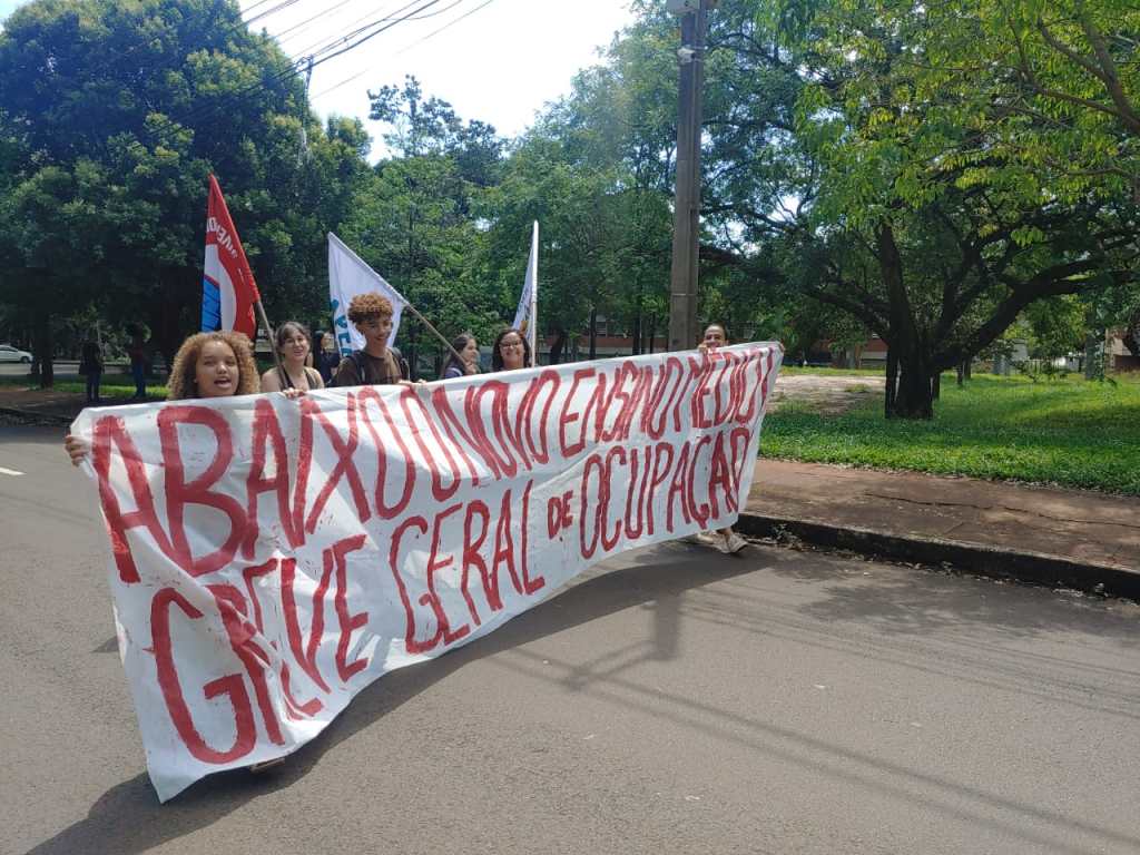 Ao meio-dia, realizou-se uma manifestação na universidade, caminhando com faixas e bandeiras desde o CAP até o Restaurante Universitário, onde foi pendurada a faixa com a consigna “ABAIXO O NOVO ENSINO MÉDIO! GREVE GERAL DE OCUPAÇÃO!”.