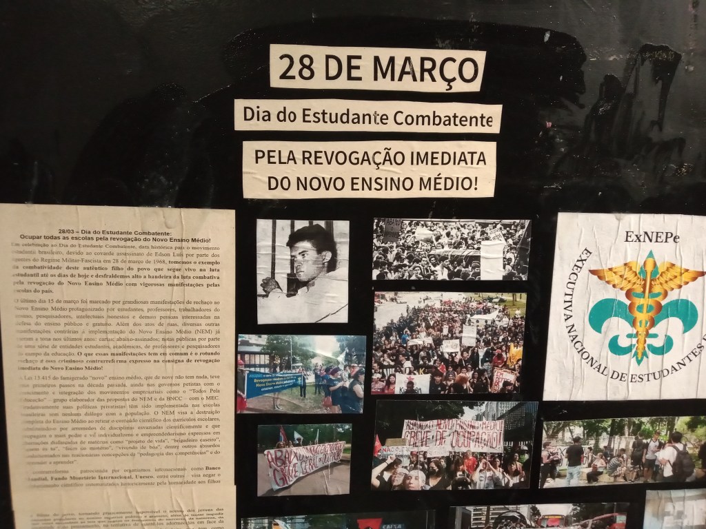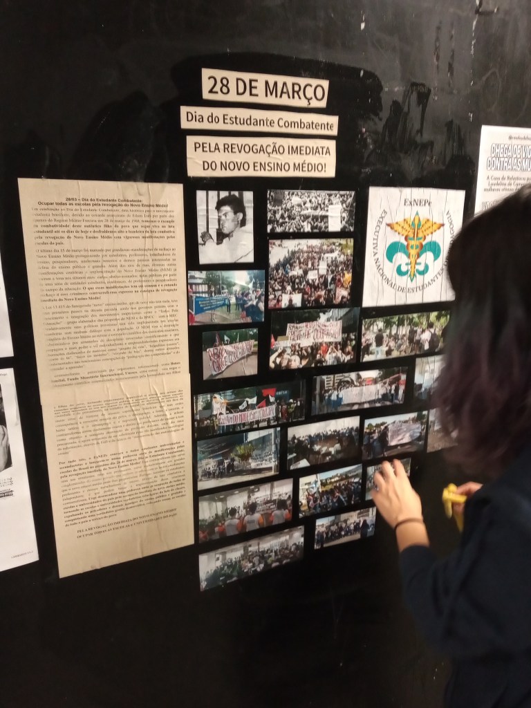 Foram realizados dois murais, um sobre o 25º Encontro Paulista (EPEPe), realizado em Ribeirão Preto/SP, colado na entrada do campus, e outro sobre o 28 de março e as lutas nacionais contra o Novo Ensino Médio, em frente à porta do Restaurante Universitário. Em ambos, os materiais foram fixados na parede em formato de cola de lambe.