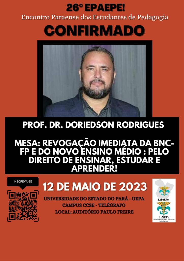 A Executiva Paraense dos Estudantes de Pedagogia (ExPaEPe) convida a todas e todos a participarem do 26° Encontro Paraense de Estudantes de Pedagogia – EPAEPE, que será realizado no dia 12 de maio de 2023 em Belém do Pará, na Universidade do Estado do Pará (UEPA), campus CCSE, Auditório Paulo Freire.