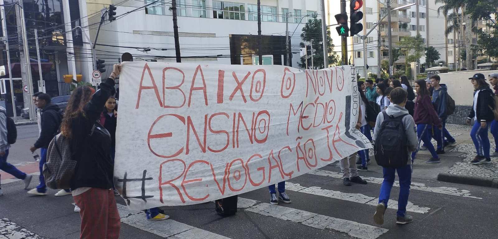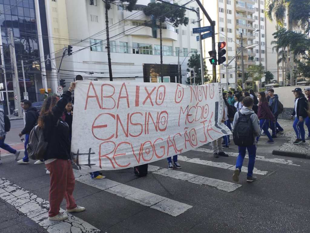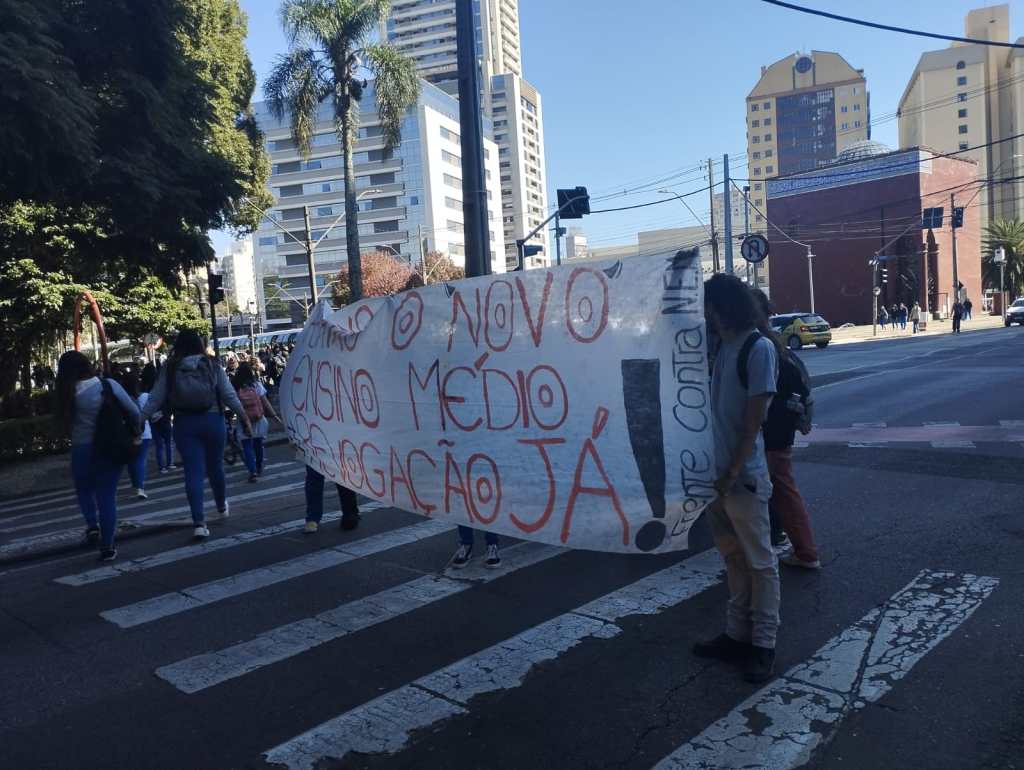 No dia 11 de Maio cerca de 20 estudantes, secundaristas e universitários, fizeram uma atividade contra o Novo Ensino Médio, em frente ao Colégio Estadual do Paraná (CEP).