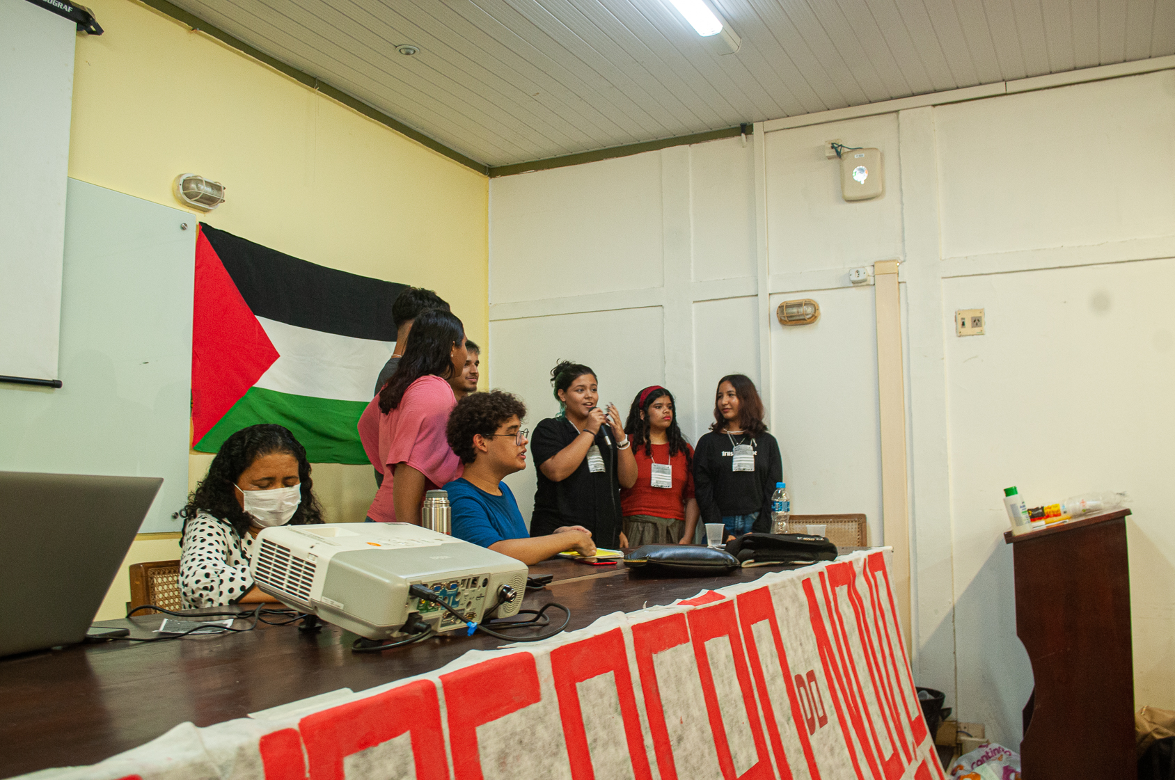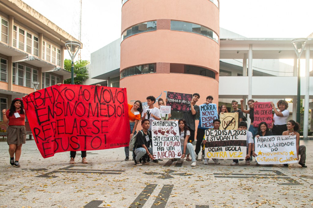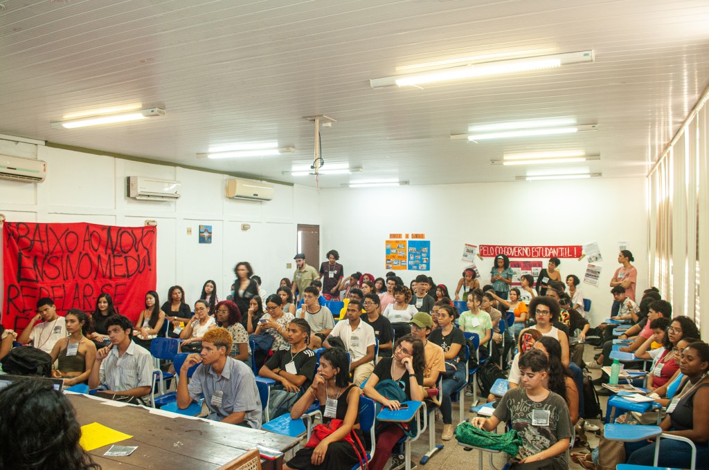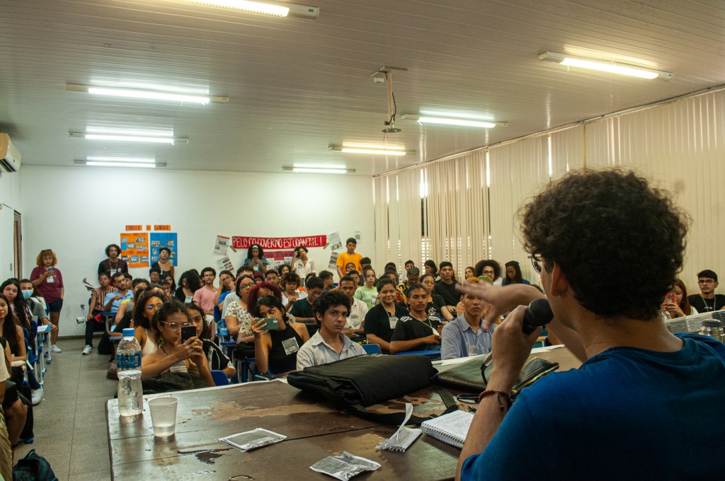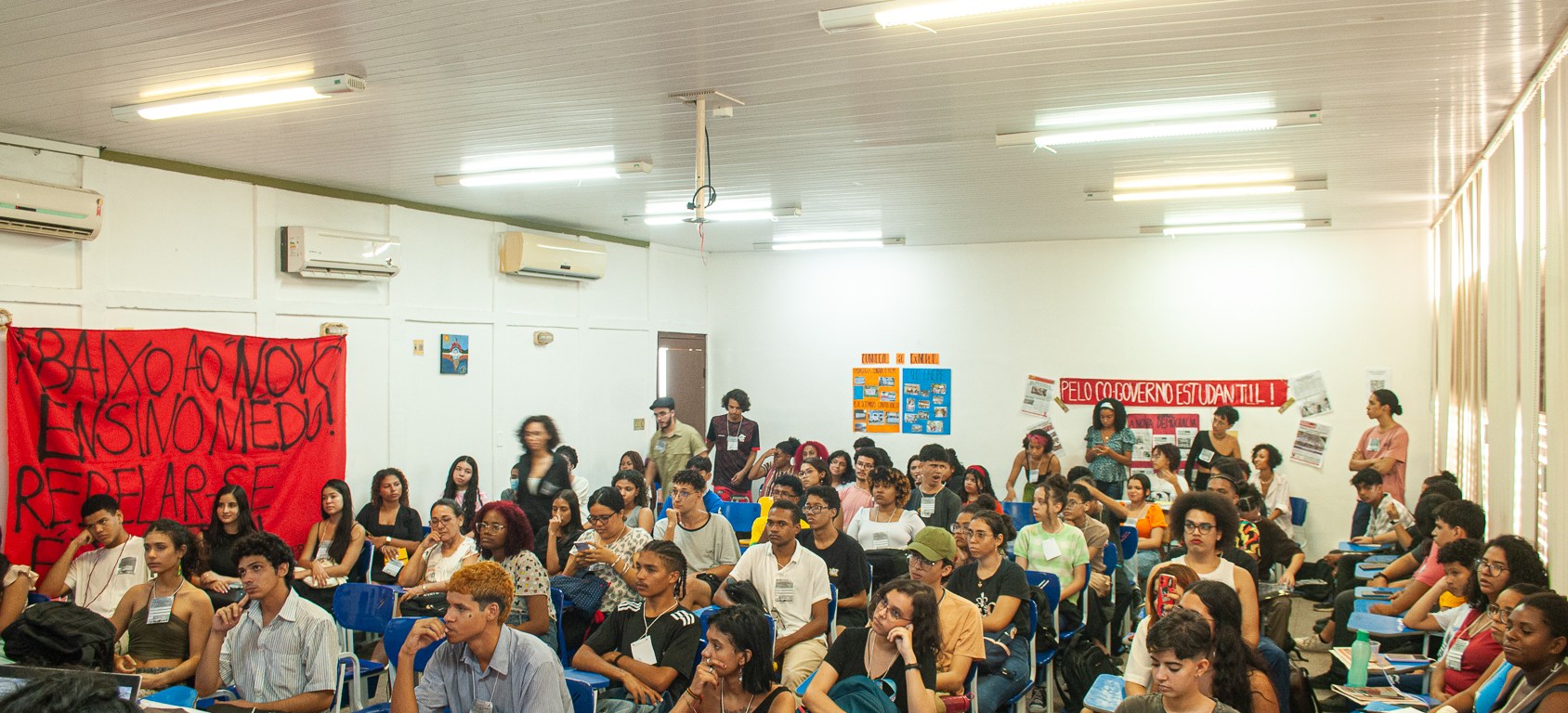 Durante o período da tarde, houve a mobilização de mais de 20 secundaristas na UFMA, para estarem presentes no auditório, provando a importância de derrubar os muros da Universidade, e que ela ecoe também as lutas renhidas que estão acontecendo nas escolas públicas contra o “Novo” ensino médio. Os secundaristas tiveram uma poderosa presença, elevando o espírito e disposição de lutar dos presentes. Chegaram com uma grande faixa que dizia “Abaixo o Novo Ensino Médio! Rebelar-se é justo!”.