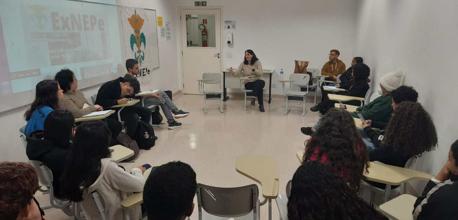 Foi realizado o vitorioso Pré-FoNEPe na Universidade Federal de São Paulo campus Guarulhos no dia 01 de julho, reunindo cerca de 20 estudantes para debater o “Novo” Ensino Médio e discutirem a necessidade imediata de revogação. O debate foi promovido pela ExNEPe e convidou a Prof. Dra. Marcia Jacomini, uma das maiores pesquisadoras sobre mudanças curriculares, como o NEM e a BNCC, além de ter grande foco em gestão democrática na rede pública de ensino.