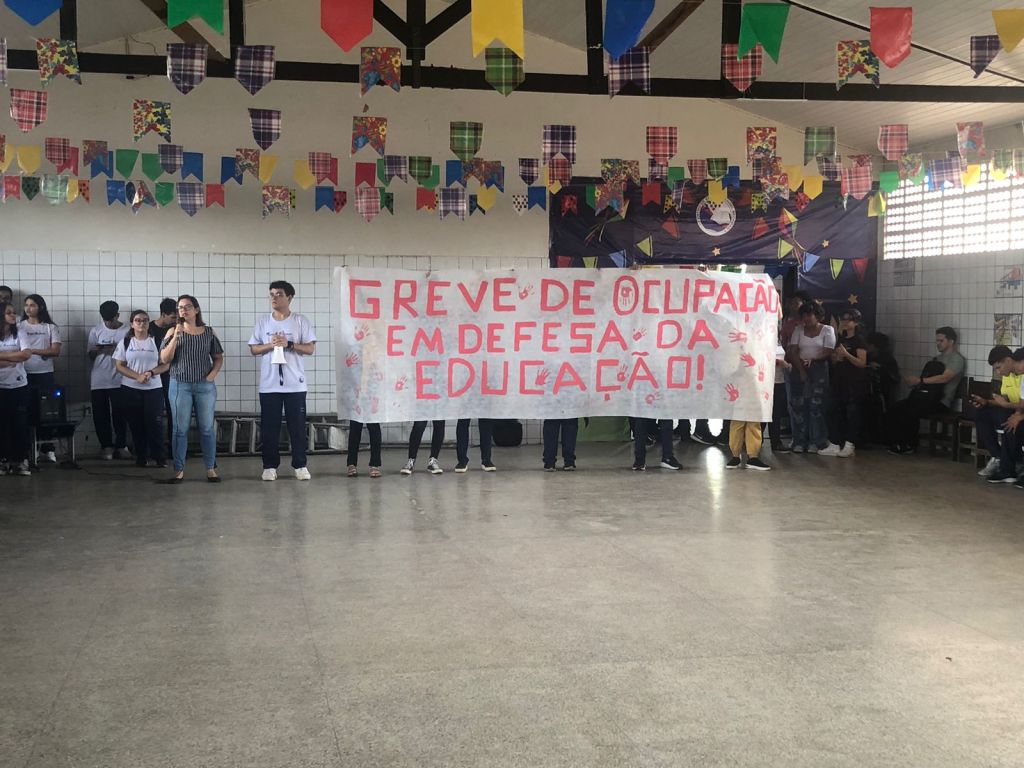 Decretamos nossa greve de ocupação! Esta construída há tempos, como compromisso e entendimento de que os estudantes independentes devem se revoltar contra toda destruição do ensino público. Além de levantarmos as pautas de reivindicação pela situação precária da escola, exigindo a reforma da sala de artes, da quadra poliesportiva etc., e, principalmente pela revogação imediata do “Novo” Ensino Médio!