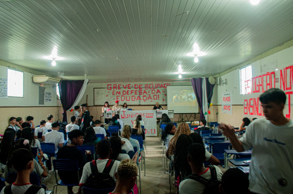 Os secundaristas, revoltados com a imposição do “Novo” Ensino Médio na sua escola, se organizaram para o enfrentamento a esse ataque profundo à educação pública brasileira. Tendo que ter aulas dos “itinerários formativos” ao invés de aulas com conteúdos verdadeiramente científicos, como “projeto de vida”; observando a precarização das salas de aulas e em relação aos professores serem obrigados a ter que dar essas mesmas aulas sem condições materiais; o esvaziamento científico cada vez maior do currículo; a lida diária com salas de aula caindo aos pedaços, com ar condicionados quebrados e sem possuírem um espaço adequado para interação esportiva, como uma quadra poliesportiva, decidiram, de forma soberana, depois de duas assembleias massivas, pelo turno matutino e vespertino contando com a presença de professores e responsáveis, a aprovação de uma carta-compromisso para enfrentar essas injustiças e reivindicar suas demandas através de uma greve de ocupação.