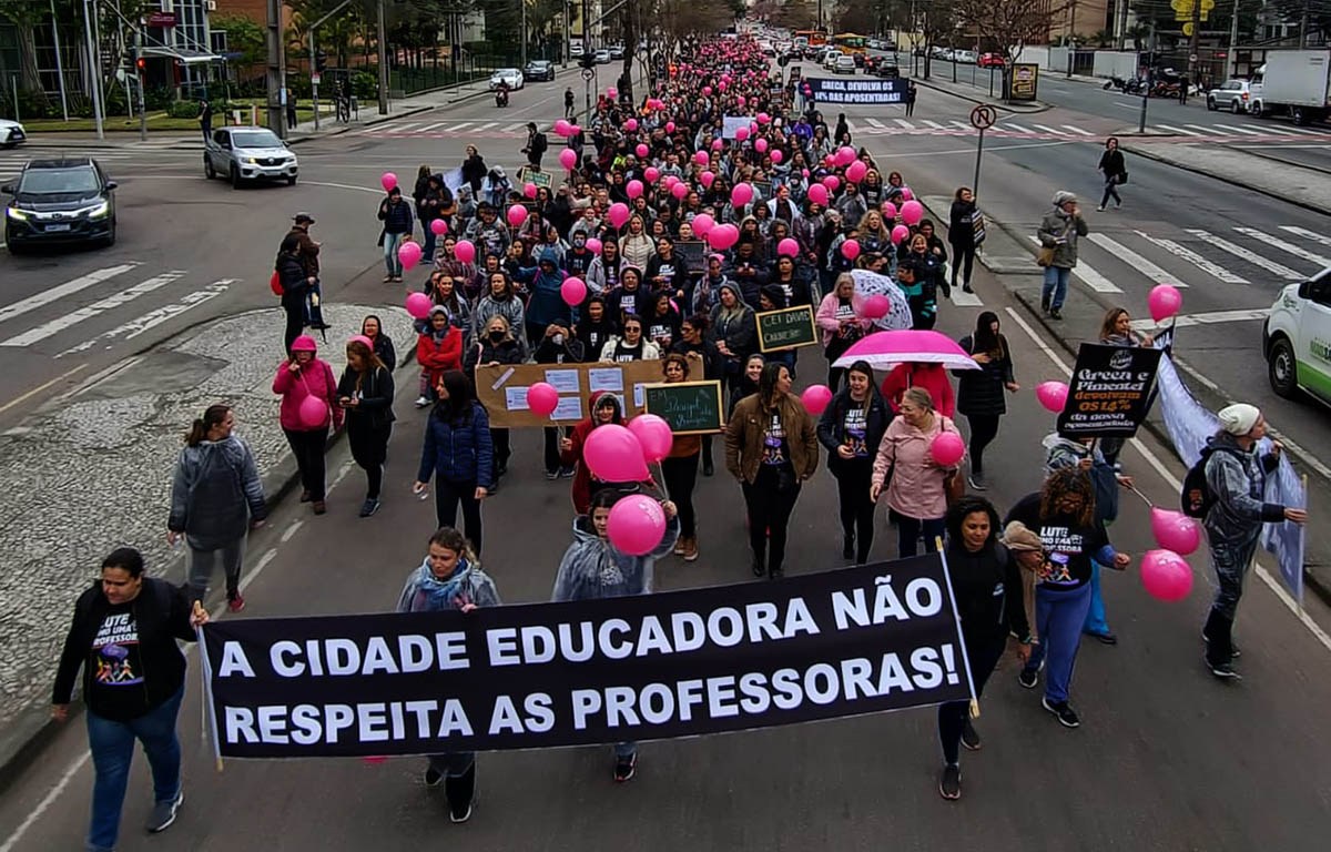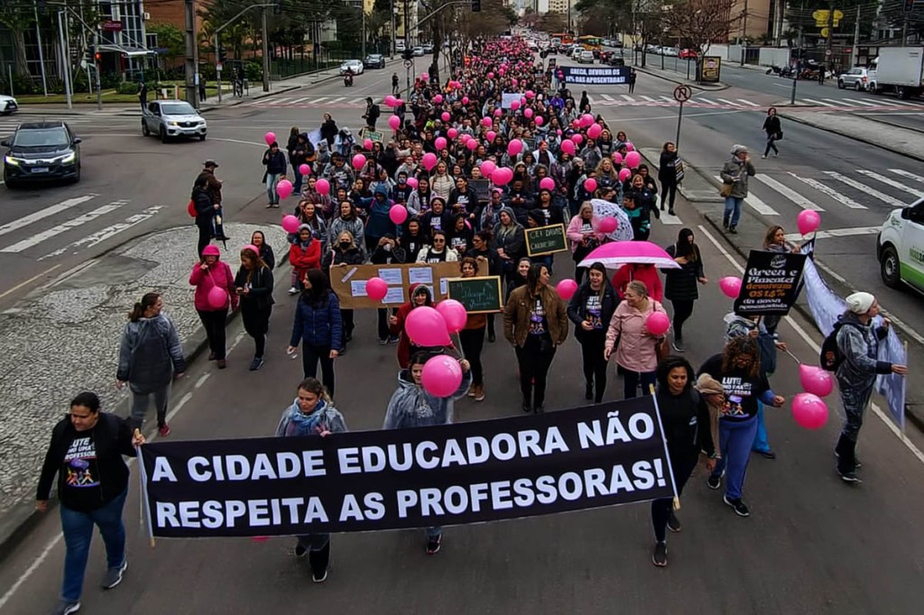 Nesta terça-feira (8), o SISMAC (Sindicato dos Servidores do Magistério Municipal de Curitiba) reuniu centenas de professores de 80% das escolas da rede municipal de ensino de Curitiba para iniciar uma greve por tempo indeterminado.