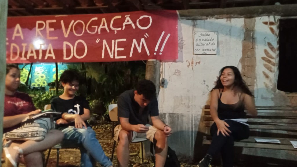 No dia 24, secundaristas e estudantes de pedagogia organizaram uma roda de conversa para debater a necessidade da revogação do novo ensino médio e denunciar a farsa da consulta pública.