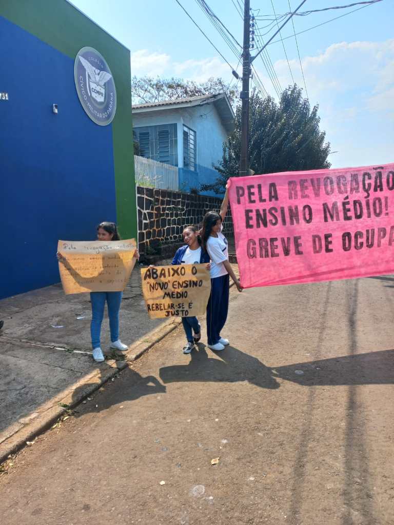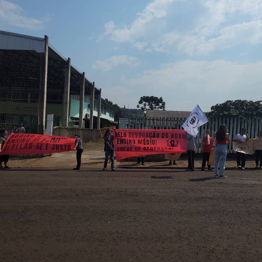 A panfletagem no Colégio Estadual Cívico Militar Érico Veríssimo logo se tornou uma breve manifestação de uma quadra, contando com a participação de estudantes da UFFS e cinco secundaristas do magistério do Colégio Estadual Professor Gildo Aluísio Schuck. Apesar de breve, a manifestação demonstrou a fúria dos estudantes frente às reformas do ensino médio, que entoavam palavras de ordem e seguravam cartazes; além disso, os manifestantes foram elogiados por funcionárias de um dos colégios e por alunas do ensino fundamental 1 do Escola Municipal Padre Gerson. No geral, a mobilização em Laranjeiras do Sul contra o “Novo” Ensino Médio evidenciou a força da voz dos estudantes independentes, quando se unem para defender os interesses do povo. A panfletagem, o protesto na rua e a solidariedade demonstrada, não apenas impactaram a conscientização local, mas também contribuíram para um movimento maior de resistência estudantil.