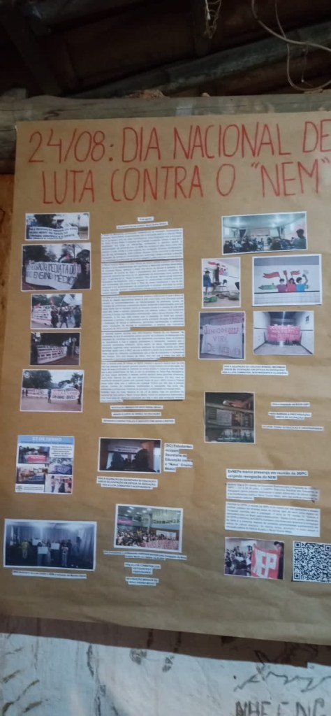 No esforço de impulsionar a luta contra o novo ensino médio que vem tomando proporções cada vez maiores por parte de estudantes e professores, a ExNEPe, em seu 25º FoNEPe em Dourados-MS definiu os dias 24 de agosto e 19 de outubro como dia nacionais de luta contra o “novo” ensino médio. Dessa forma, seguindo o espírito de combatividade expresso no vitorioso dia 27 de junho, estudantes universitários, secundaristas e professores se mobilizaram de norte a sul do país denunciando a criminosa imposição do NEM e exigindo sua imediata revogação, tendo inclusive sido deflagrada uma ocupação relâmpago de um dia na ETEC Cepam, em SP, capital.