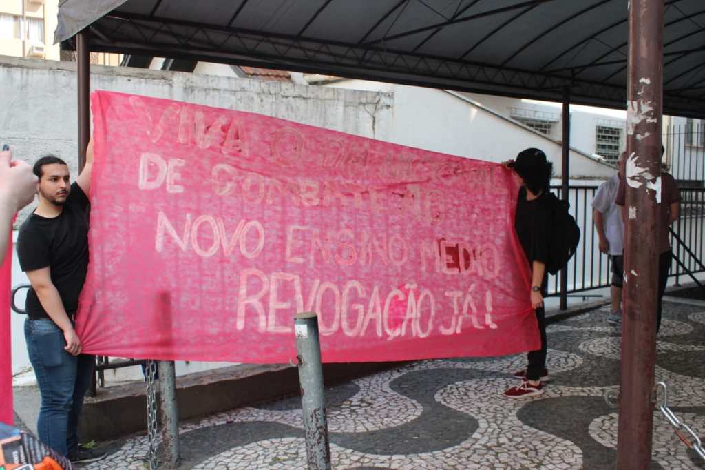 Em Campinas, estudantes que compõem a Frente Contra o “Novo” Ensino Médio – Campinas, realizou atividade de panfletagem no Restaurante Universitário da UNICAMP. Foram distribuídos cerca de 800 panfletos, em que os estudantes pontuaram a necessidade da organização e luta estudantil pela revogação imediata do NEM. Diversos estudantes de pedagogia e licenciaturas apoiaram a atividade e se interessaram por compor a Frente. Ao final da panfletagem, os estudantes da Frente deixaram uma faixa “Abaixo o Novo Ensino Médio”, pautando no megafone o caráter anticientífico do NEM, desmascarando a farsesca consulta pública e a necessidade de sua revogação imediata.