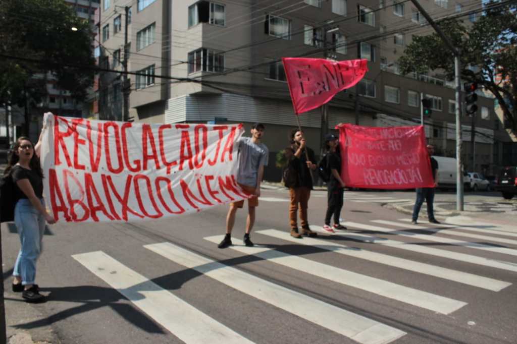 Em Curitiba, após assembleia do curso de Pedagogia da UFPR, os estudantes realizaram um vitorioso trancaço de rua ao lado da reitoria e do RU. Foram 30 minutos de trancaço mas que repercutiu enormemente. Muitos motoristas e pedestres apoiaram e buscaram entender o que estava acontecendo. 300 panfletos foram entregues durante essa atividade para os carros e estudantes que passavam perto, e a denúncia contra o NEM ficou escancarada!