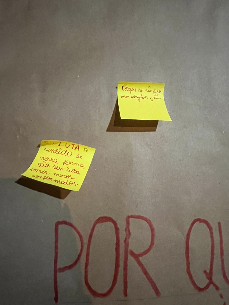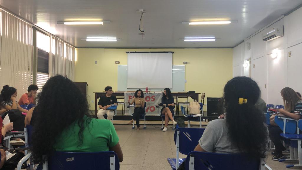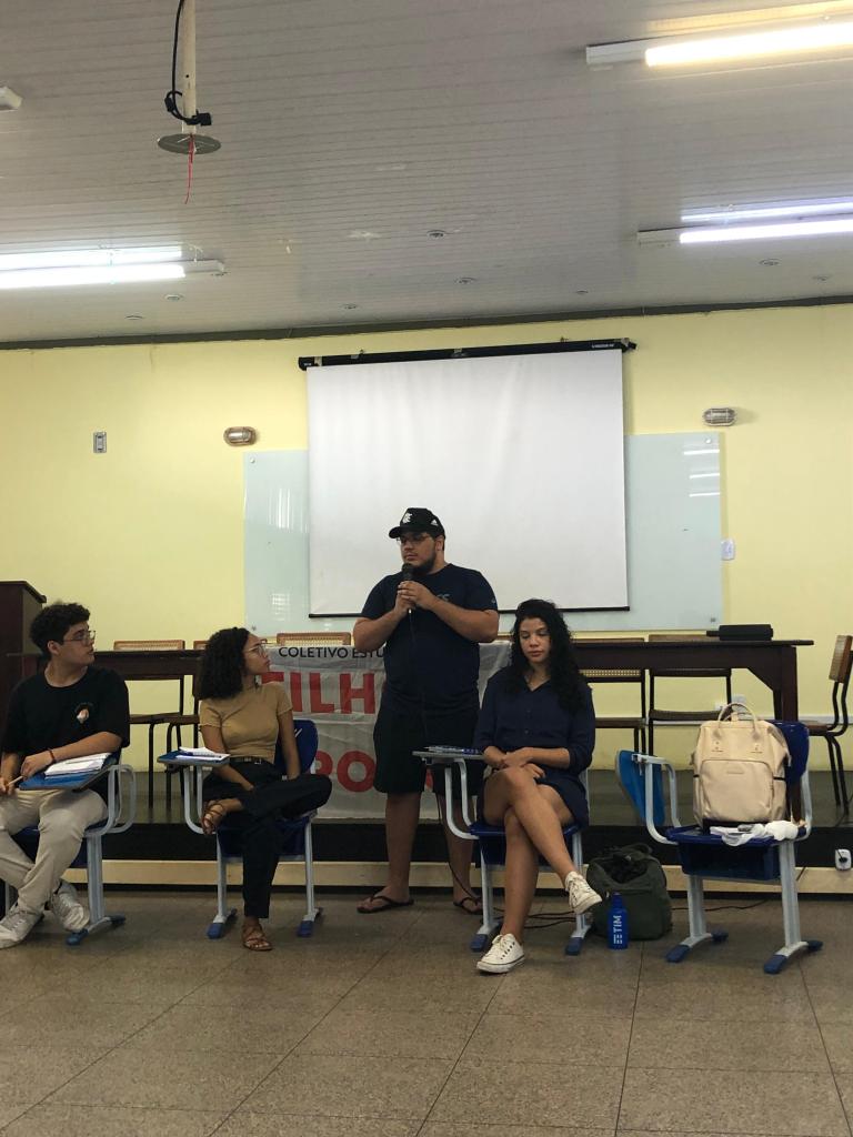 Durante a conversa, estudantes de comunicação social e artes visuais se posicionaram, demonstrando a necessidade dos estudantes se organizarem no movimento estudantil para defender com unhas e dentes a educação pública.