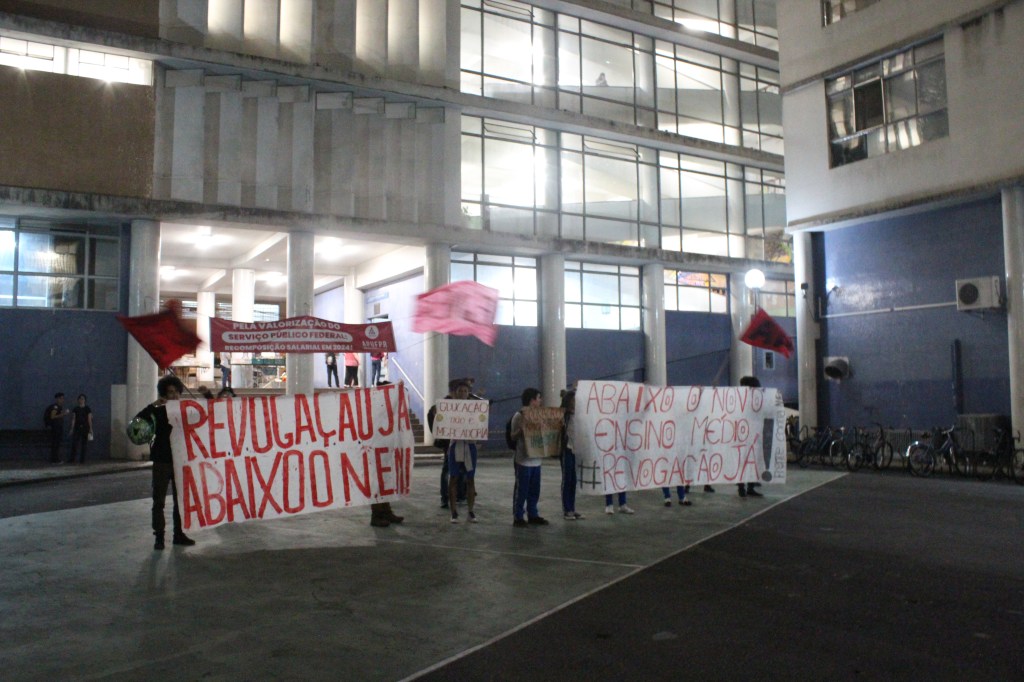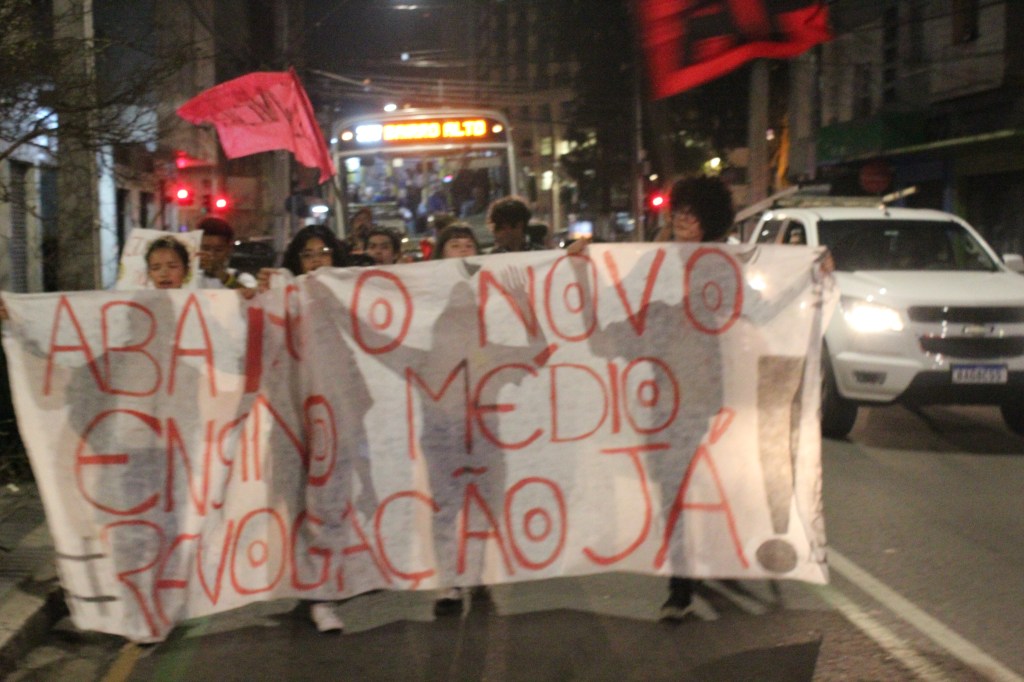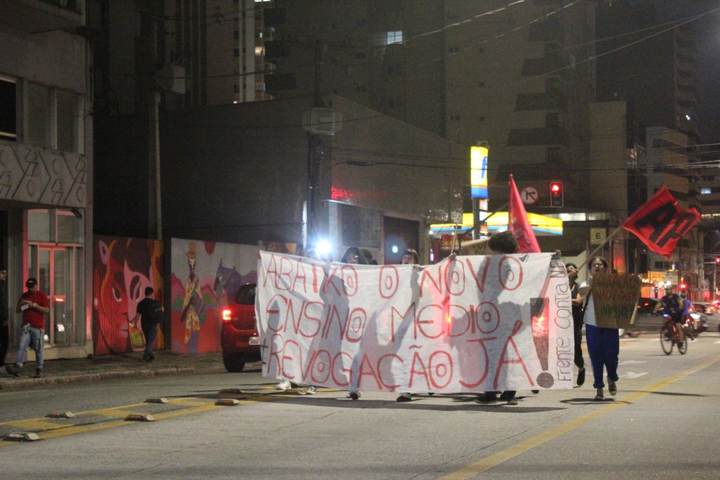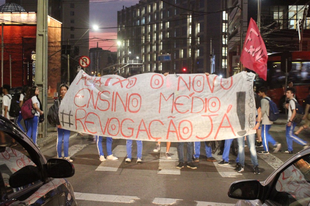 Na parte da noite, estudantes secundaristas e universitários se uniram na saída do Colégio Estadual do Paraná para denunciar a reforma e se somar a mobilização nacional pela revogação do “novo” ensino médio. Em média 20 estudantes marcharam do CEP até o RU Central da UFPR, onde fizeram uma agitação convocando todos a lutar contra o NEM e a apoiar o movimento secundarista. Ao final, reuniram – se no pátio da reitoria e afirmaram o seu compromisso de permanecer lutando contra o Novo Ensino Médio.