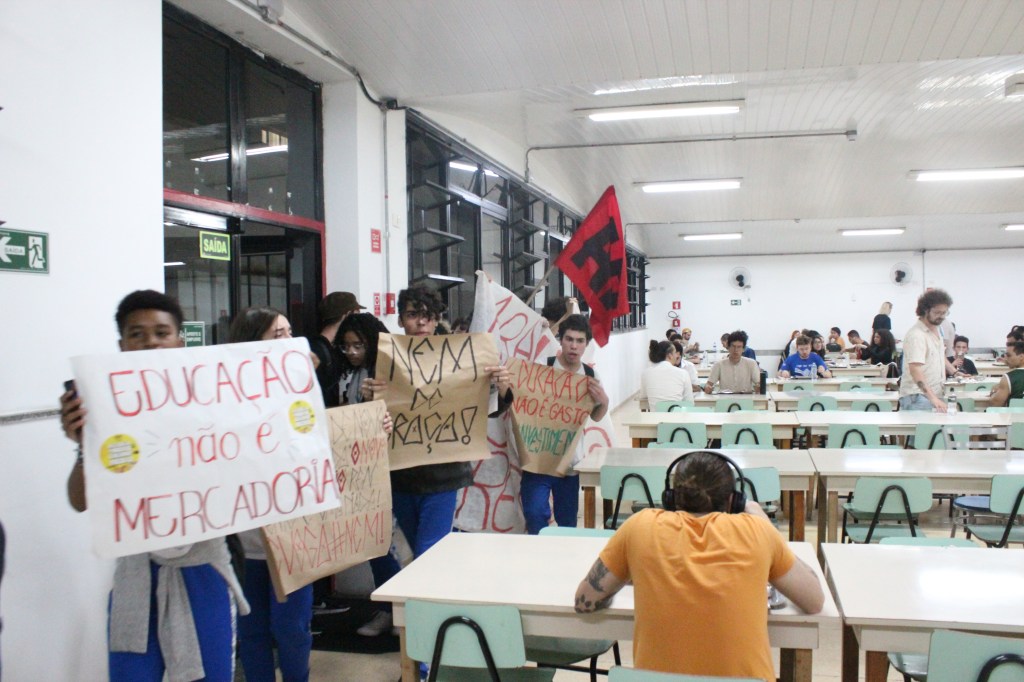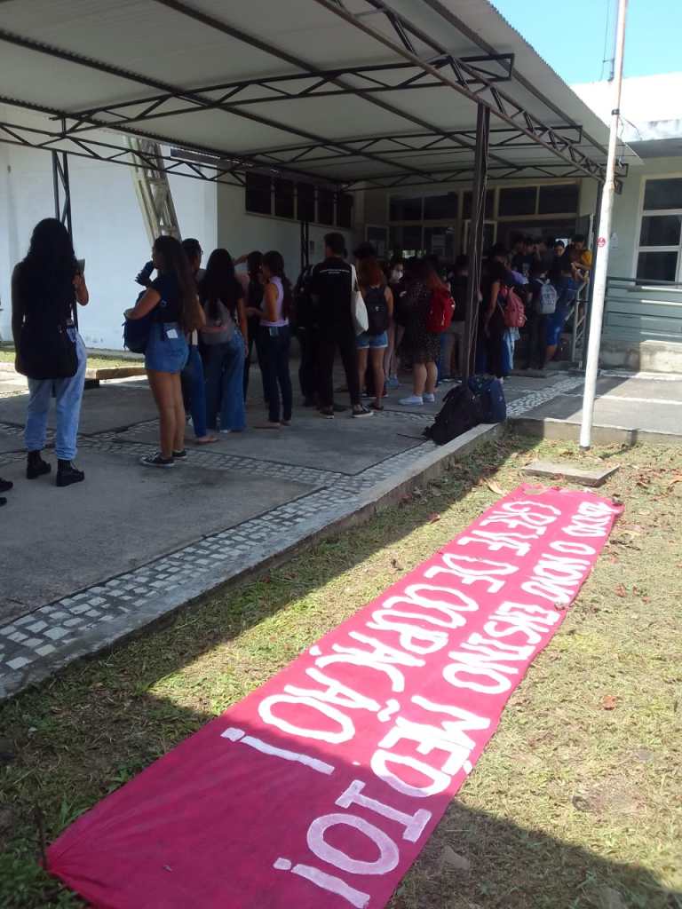 No dia 24 de agosto, estudantes secundaristas da ETEC CEPAM (USP) mobilizados pelo grêmio Maria da Conceição Tavares, a Frente Independente de Luta contra o Novo Ensino Médio de São Paulo, o Coletivo Aroeira e a Executiva Nacional de Estudantes de Pedagogia, realizaram uma vitoriosa manifestação em sua escola. Ao adentrarem no prédio, realizaram uma assembleia estudantil pela manhã que discutiu a reforma do “Novo” Ensino Médio, além de problemas específicos como a reforma da quadra, melhores condições da merenda e apoio a greve dos professores das ETECs e FATECs. Os alunos aprovaram a ocupação da escola, entretanto, foram coagidos a encerrar a mobilização pelo autoritarismo da direção, que ameaçou punir quem saísse da sala com faltas e perda de notas.