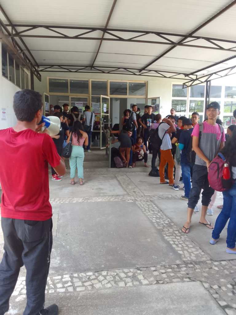 Na capital Porto Velho, estudantes da Universidade Federal de Rondônia – Unir e secundaristas de colégios da cidade realizaram agitação e panfletagem na porta do Instituto Federal de Rondônia – IFRO. Mais de 250 panfletos foram distribuídos e através do megafone os presentes denunciaram as terríveis consequências que a imposição do NEM tem causado além de conclamar estudantes e professores a somarem-se na luta, dando impulso ao Comitê de luta contra o NEM de Porto Velho.