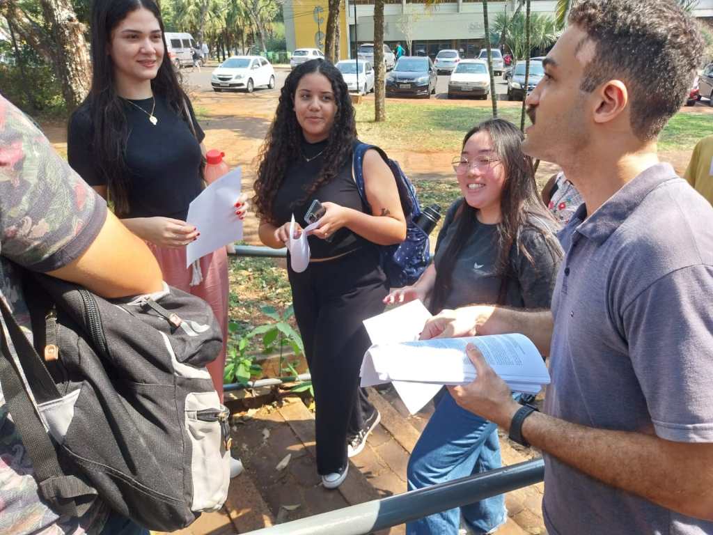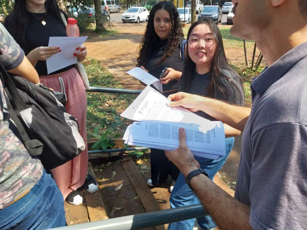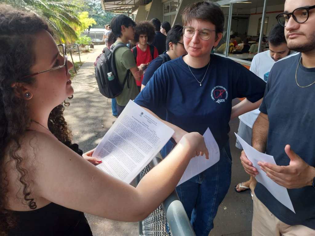 Esta agitação foi organizada conjuntamente entre os centros acadêmicos de Pedagogia, Geografia e Psicologia, que uniram forças para construir o Dia Nacional de Luta. Ao meio dia, estudantes realizaram uma agitação com panfletagem na porta do RU da UEM, distribuindo centenas de panfletos e fazendo falas para politizar e mobilizar os que passavam. Como forma de unificar a luta docente e estudantil, também foram distribuídos centenas de panfletos que relatavam a luta dos professores temporários e alguns destes se uniram à panfletagem.