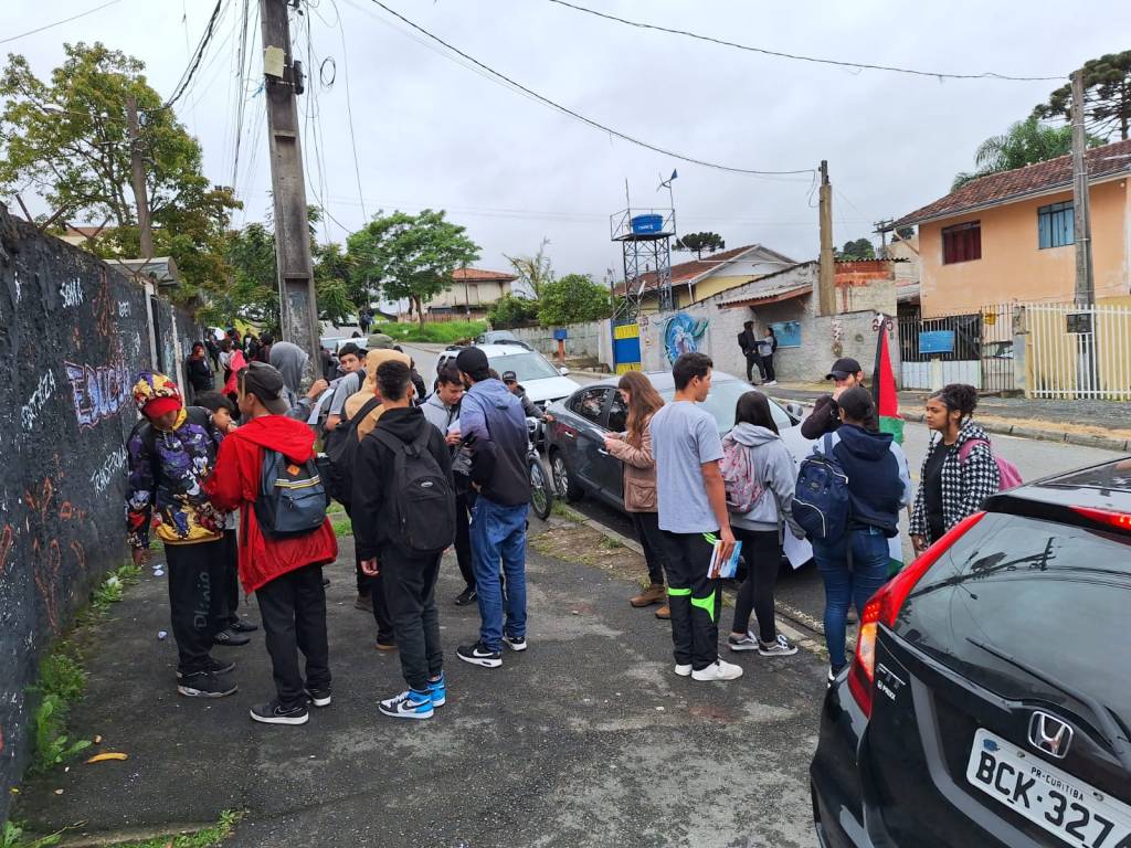 No dia 19 de outubro, estudantes de pedagogia e psicologia se reuniram no Colégio Estadual Plinio Alves Monteiro Tourinho em Colombo, região metropolitana de Curitiba, para denunciar a criminosa reforma do “Novo” Ensino Medio e defender a justa luta do povo palestino. Os estudantes e professores que iam saindo do colégio paravam para conversar com os companheiros, demonstrando total apoio a luta pela revogação da reforma e rechaço à agressão genocida do Estado de Israel ao povo palestino.
