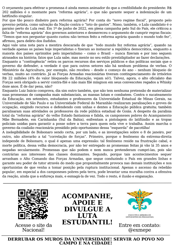 Ao final da agitação, os estudantes do Plinio e a ExNEPe, com apoio dos professores, pais e funcionários do colégio, firmaram o compromisso de impulsionar a luta contra o “novo” ensino médio e a precarização do ensino, marcando a necessidade da luta combativa para resolver os problemas da educação.