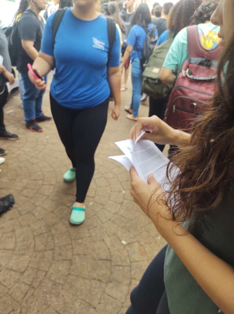 No dia 19 de Outubro, foi realizada uma panfletagem e agitação em frente ao colégio Presidente Vargas em Dourados (MS). Na agitação, se denunciou a tentativa de enganação do governo federal de falar em mudança e “revogação” do NEM quando na verdade propõe apenas ajustes mínimos que não mudam em nada do essencial, tudo pra frear a luta estudantil. Também foi denunciado o recente corte de verbas na educação feito pelo governo de R$332 milhões em Agosto e o mais recente corte de 116 milhões na CAPES essa semana.