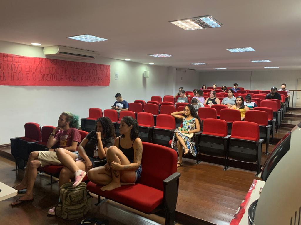 Após as panfletagens pela manhã e pela tarde, foi realizado um cine-debate na Faculdade de Educação com exibição do documentário “Acabou a paz, isto aqui vai virar o Chile” de Carlos Pronzato. Diversos estudantes participaram da atividade, debatendo a importância da organização política dos estudantes em prol da elevação da combatividade e independência do movimento estudantil, principalmente no curso de Pedagogia. O debate envolveu alunos e professores. Na ocasião, os estudantes discutiram e realizaram vídeo de apoio à ocupação da UFMA, como forma de demarcar a solidariedade à justa greve de ocupação que reivindica pautas urgentes para os estudantes da Universidade. Foi realizada ainda a venda de doces e boletins sobre o NEM para a auto sustentação das atividades do movimento estudantil.