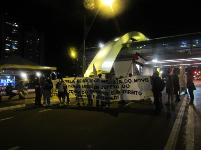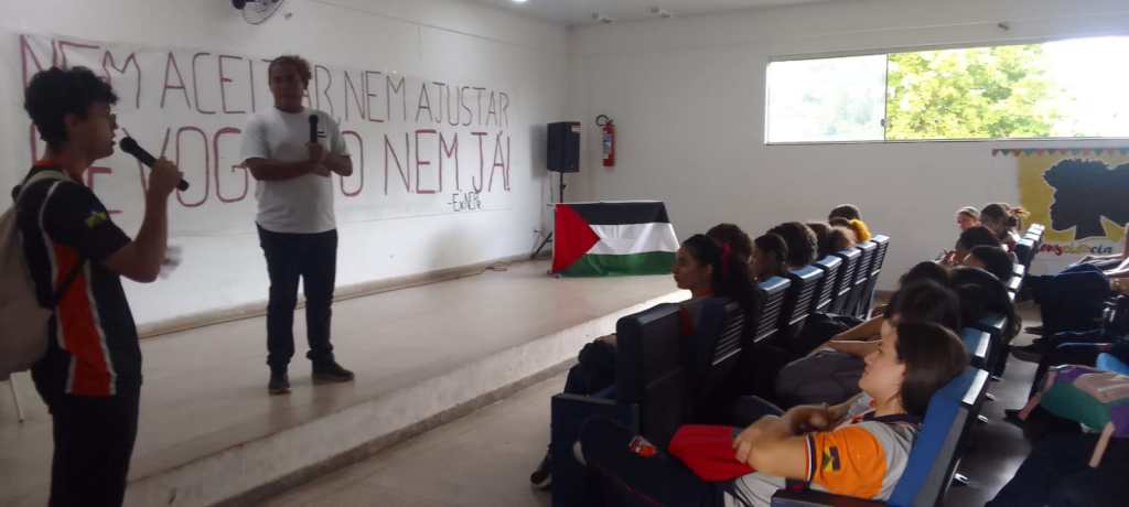 Os estudantes também aproveitaram o ato para prestar sua solidariedade e apoio a luta do povo palestino, denunciando os ataques do genocida Estado de Israel e apontando que é dever dos estudantes se colocar ao lado do povo e dos povos do mundo. Ao final, os estudantes convocaram estudantes, professores e pais a continuarem na luta por uma verdadeira revogação do NEM e a seguir o exemplo das recentes mobilizações e ocupações que se alastram pelo país como na USP, UFMA e Unicamp.
