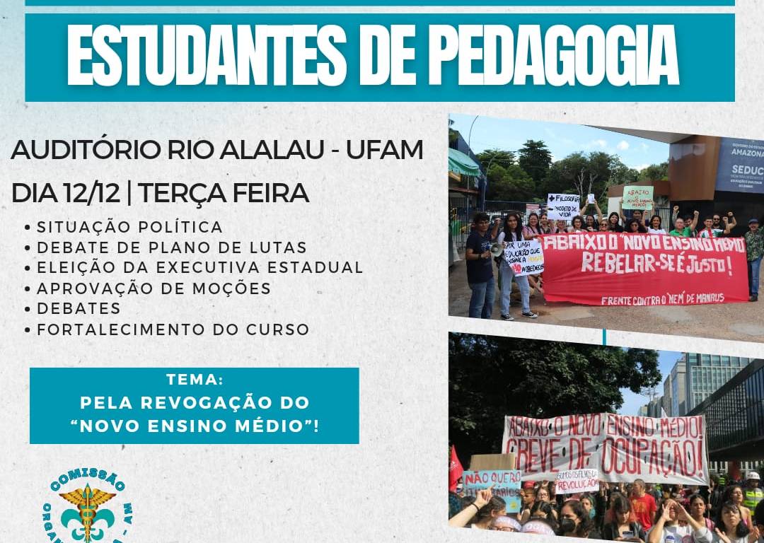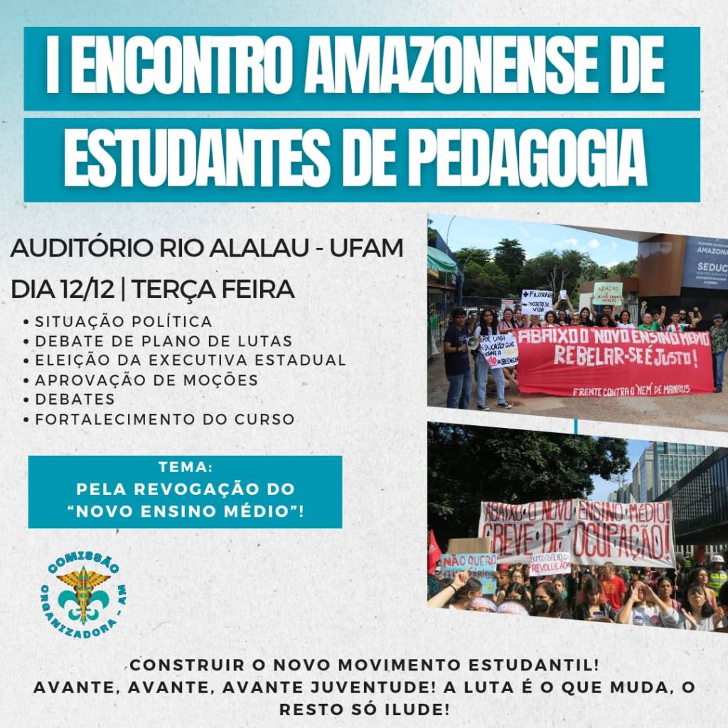 A Comissão Organizadora, em conjunto com a Executiva Nacional de Estudantes de Pedagogia, orgulhosamente anuncia a realização do 1º EAMEPe que ocorrerá no dia 12/12 em Manaus na Universidade Federal do Amazonas. O evento dará um passo histórico no estado do Amazonas e terá como tema “A revogação imediata do Novo Ensino Médio”.