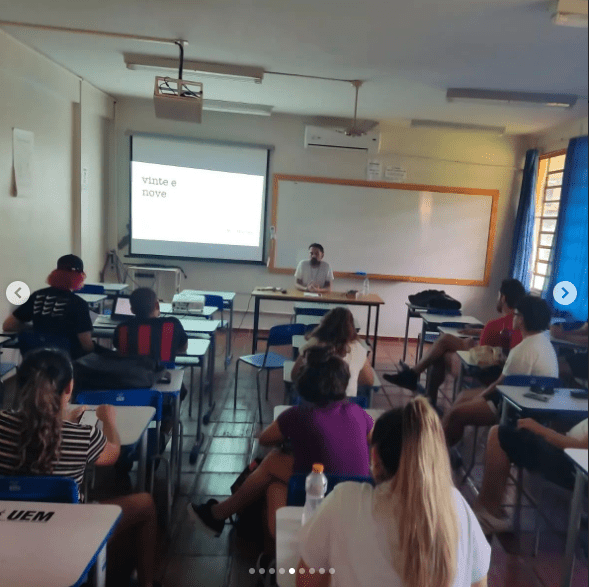 Em Maringá, houve uma oficina de cartazes com grande adesão, seguida por uma roda de conversa entre docentes e discentes do @calis_uem e @caavs.uem.