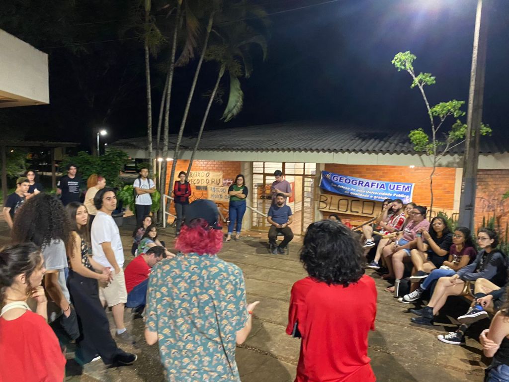 O campus regional de Ivaiporã, em especial o @cass.uem [Centro Acadêmico de Serviço Social], organizou uma aula pública com o tema “Universidade Pública e Popular: um patrimônio em risco”, que aconteceu no início da noite no Jardim Botânico.