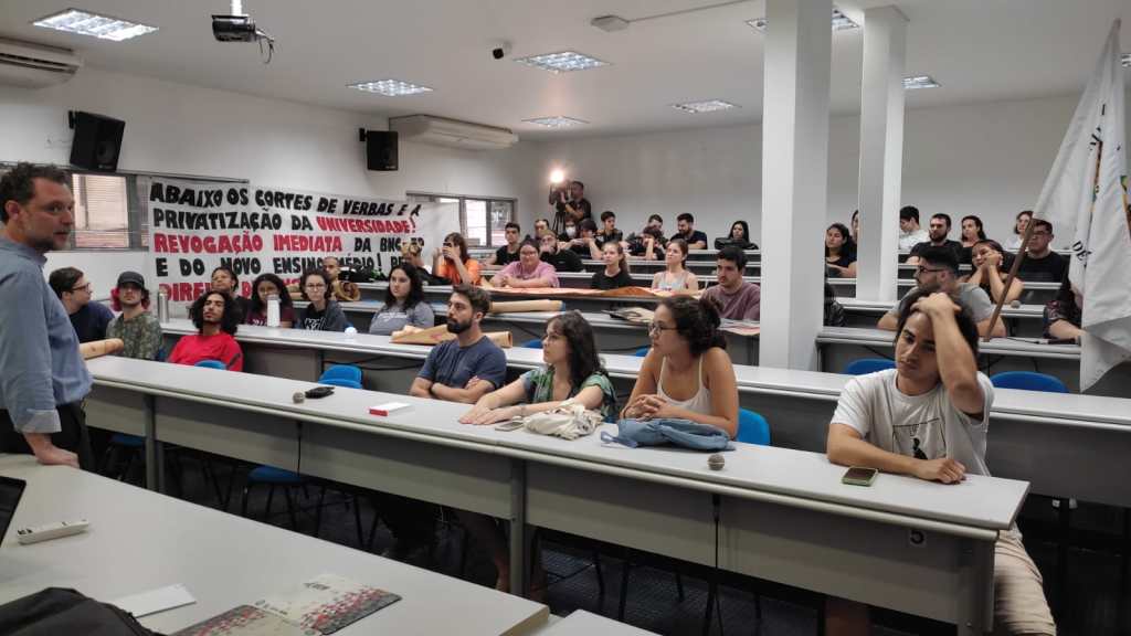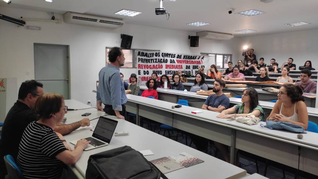 Ainda no sábado, aconteceu também uma conversa sobre os afetos, coordenada pela Professora Dra. Adriana Barin de Azevedo, da Psicologia, que demonstrou seu firme apoio à mobilização estudantil.
