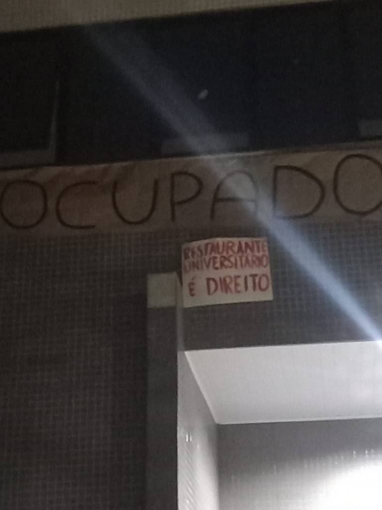 Os estudantes em ocupação iniciaram o quinto dia reunindo-se para tomar o café da manhã. Na sequência, em comissões, saíram de sala em sala panfletando a resposta do Comando de Ocupação frente ao comunicado da reitoria intitulado “esclarecimentos sobre o restaurante universitário”, que abertamente criminaliza os estudantes em luta, exige que desocupem os espaços e define os ocupantes como “invasores”, esquecendo que o espaço em que hoje está ocupado pelos estudantes fora construído para fins de conivência estudantil e, de forma indevida, tomado pela Pró Reitoria da universidade.