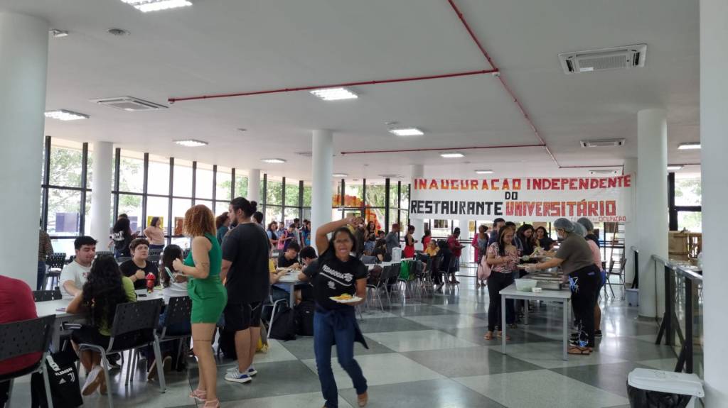 Às 11h da manhã, centenas de estudantes se somavam em frente ao espaço, para finalmente se alimentarem pela primeira vez no R.U da UNIR. Após uma série de intervenções de estudantes que denunciavam a falta de respeito da administração superior para com a comunidade acadêmica e saudavam efusivamente a luta encampada pelo comando de ocupação estudantil, a faixa fora cortada ao som de palavras de ordem e fogos de artifício, e assim, inspirados por aqueles que, com muita luta, garantiram a construção do restaurante universitário da UNIR, o movimento estudantil independente e combativo da UNIR, o tomou em suas mãos e o inaugurou.