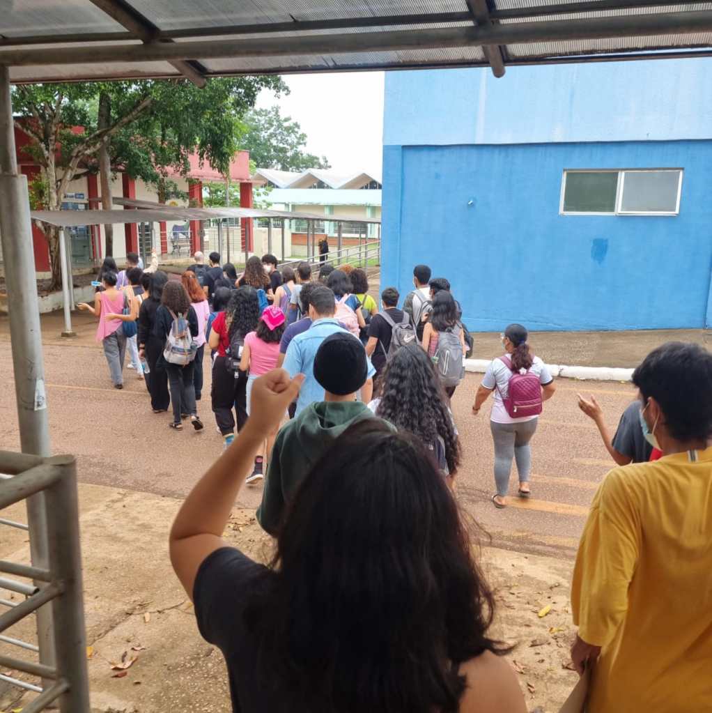 A manifestação teve início às 16h30min, contando com mais de 200 estudantes, que expressaram de forma incisiva sua indignação, por meio de falas e palavras de ordem denunciando a burocracia universitária da UNIR, que há anos tenta enganar os estudantes com falácias vazias e sem nenhum compromisso. Na sequência, saíram em manifestação pelo campus, e em alto e bom som gritavam palavras de ordem, convocando os demais a se somarem a essa luta.