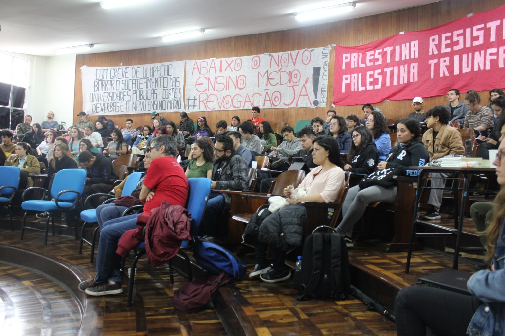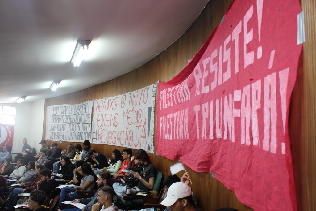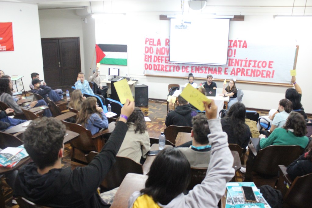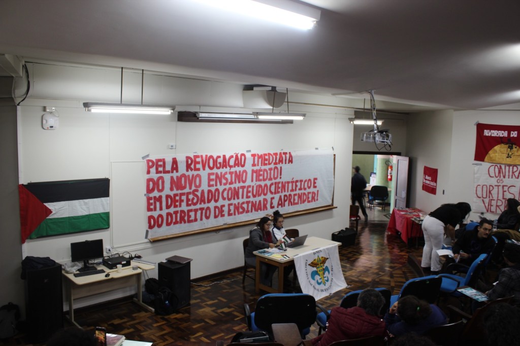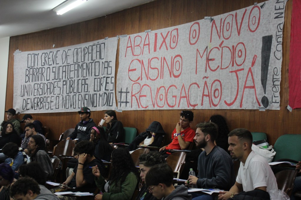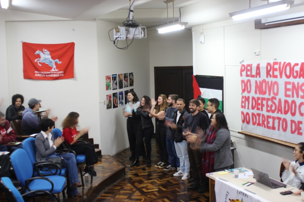 A mesa sobre o Novo Ensino Médio contou com a participação da Doutora Mônica Ribeiro – coordenadora do Observatório do Ensino Médio e a maior referência sobre o assunto no campo da educação, lutando há décadas contra a precarização do Ensino Público -, de uma estudante secundarista do local e do estudante de pedagogia Antônio Nogueira – presidente da Executiva Nacional de Estudantes de Pedagogia.