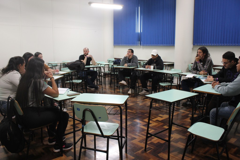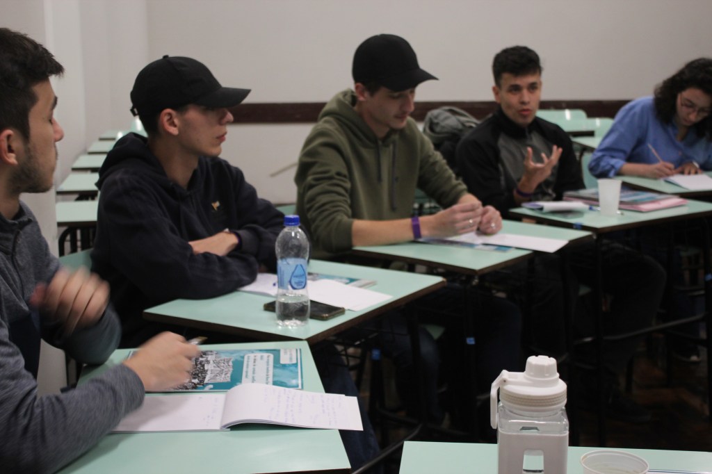Após a segunda mesa, foram separados sete grupos para que cada um desses debatesse sobre algum tema selecionado que estivesse presente nas duas mesas e depois apresentasse para apreciação e ponderação dos palestrantes. As discussões foram bem recheadas e todos os estudantes colocaram suas impressões sobre o conteúdo abordado, relacionando com elementos particulares da experiência de cada um. Com isso, todos os grupos retornaram para a plenária e sintetizaram o que foi discutido para depois finalizarem a mesa com as conclusões.