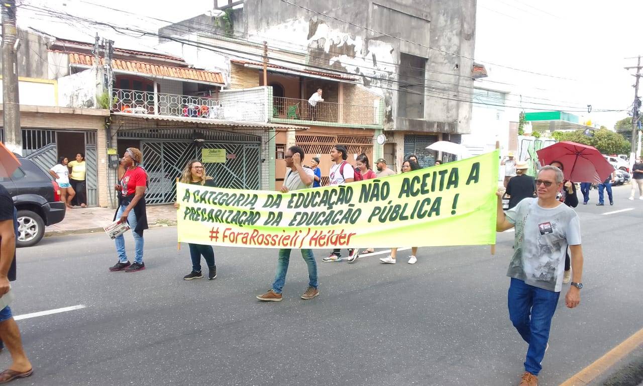 Denunciamos o governo estadual de Helder Barbalho (MDB) e o secretário de educação Rossieli Soares. O senhor feudal Barbalho, cuja família se acha dona do estado do Pará, tem jogado pesado em propaganda mentirosa para colocar pais e estudantes contra trabalhadores da educação. Tem enchido as ruas da capital de outdoors dizendo que paga o maior salário do Brasil aos professores, mais de 11 mil! Cínico! Manipula informações e esconde a realidade de um processo continuado de desvalorização salarial, com 5 anos sucessivos de perdas reais no salário, além da perseguição e assédio por parte do governo estadual e secretaria de educação. Enquanto o governador propagandeia demagogicamente que é o “melhor governo estadual do país”, pedaços de teto caem das salas de aula devido a grande precarização das escolas.