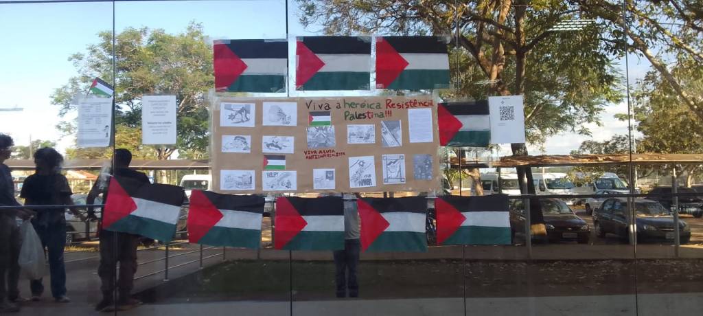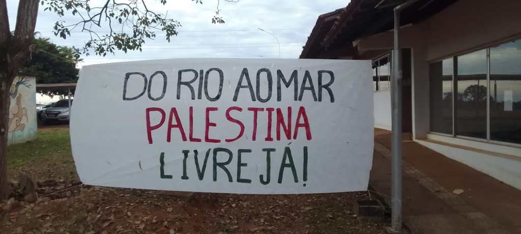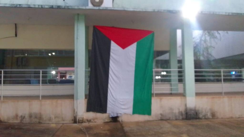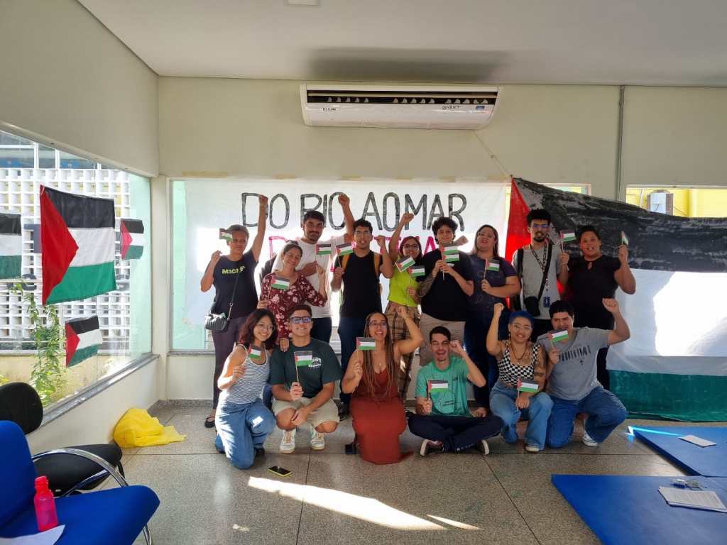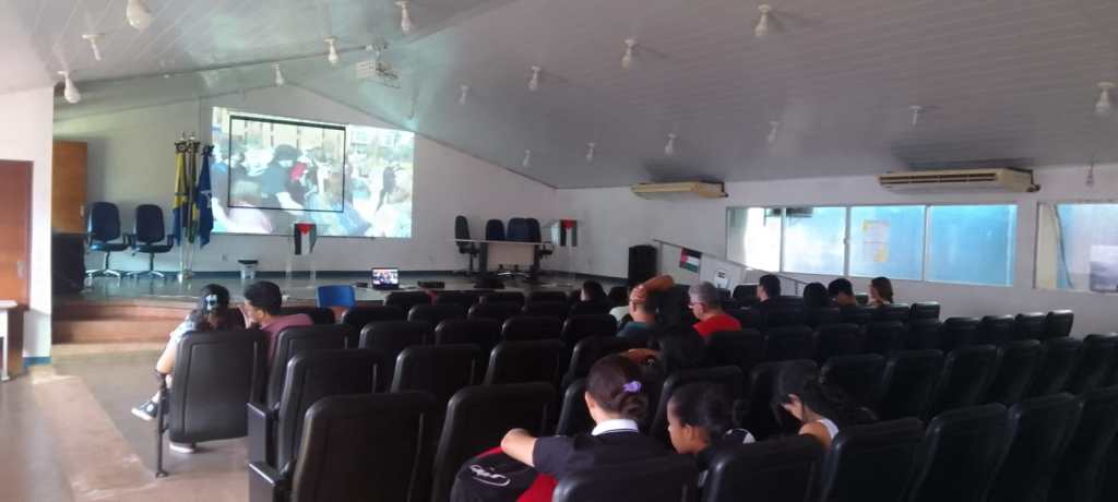 Ainda na quinta feira, estudantes dos cursos de pedagogia, letras-inglês, ciências sociais, geografia e ciência da computação, acamparam na UNIR, buscando impulsionar o movimento de apoio e solidariedade ao povo palestino que tem tomado o mundo inteiro. Após gravarem um vídeo onde destacam a nefasta ligação das autoridades de Rôndonia, assim como o agronegócio local, com o estado sionista de Israel, ao ponto do genocida Benjamin Netanyahu ter recebido o título de cidadão honorário do estado, em outubro de 2023, os estudantes expressam o seu incondicional apoio a resistência palestina. Em seguida, os estudantes assistiram ao documentário “Occupation 101 – Vozes da Maioria Silênciada – que aborda as causas do conflito no território palestino, mostrando o que é e como se desenvolveu a entidade sionista, quais são seus pilares ideológicos, assim como mostra como é a vida das massas palestinas na faixa de gaza sob intenso cerco militar imposto pelo estado sionista de israel e também uma importante denuncia do papel dos EUA como principal financiador e apoiador do agressor sionista. A rodada de debate após a exibição do documentário elevou o moral de todos os participantes que sob palavras de ordem de “Estado de Israel terrorista e assassino, viva a luta do povo palestino” e “Fora israel das terras palestinas, fora ianques da América Latina” organizaram o acampamento e dormiram com o espirito de luta ardente em seus corações.