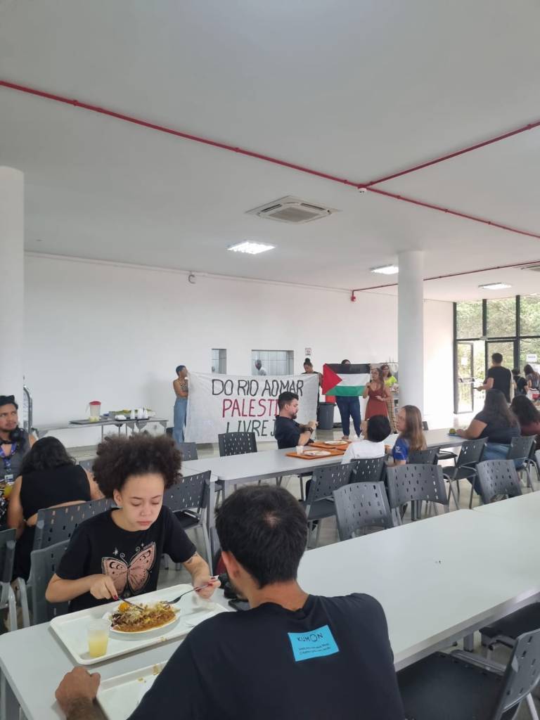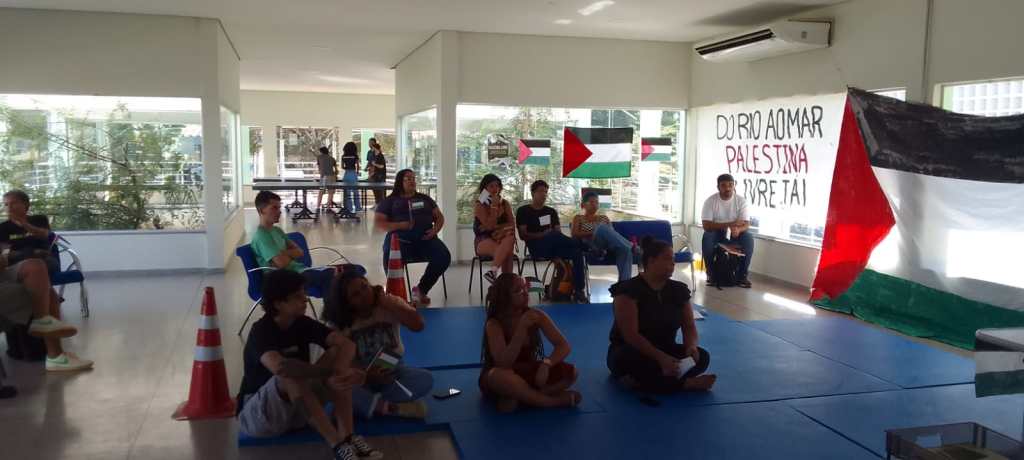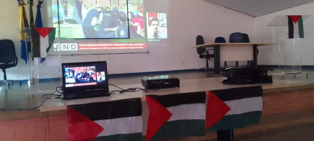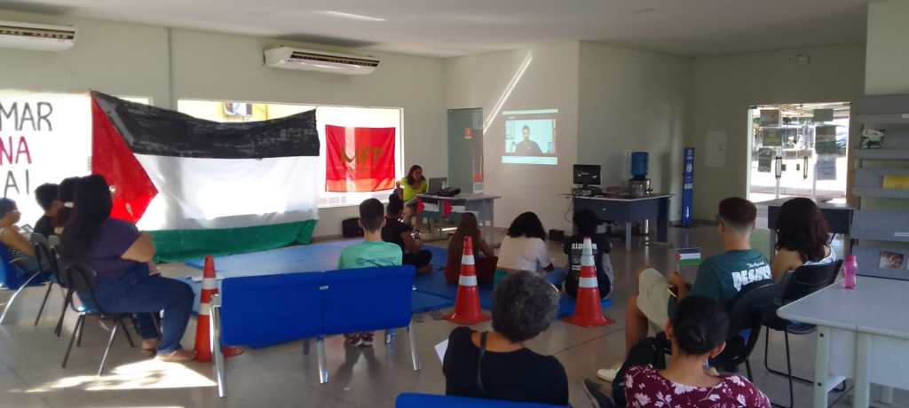 No dia seguinte, 19 de junho, os estudantes realizaram uma roda de debate acerca do papel dos acampamentos estudantis no apoio e solidariedade ao povo palestino. Após a mobilização de estudantes com passagens em sala e intervenções no restaurante universitário, o debate foi realizado no auditório Paulo Freire e contou com a presença de dezenas de estudantes. Após assistirem a trechos do programa Plantão Palestina, do jornal A Nova Democracia, que trata dos acampamentos, os participantes destacaram o papel ativo que a juventude universitária tem tido ao tomar parte no apoio a resistência do povo palestino e ressaltando o quanto os acampamentos estudantis, sobretudo nos EUA e Europa, escancaram a crise que vive a democracia burguesa, onde milhares de estudantes e professores tem sido agredidos e presos simplesmente por manifestarem seu justo apoio ao povo palestino e por denunciar os crimes brutais praticados pelo estado sionista de israel.