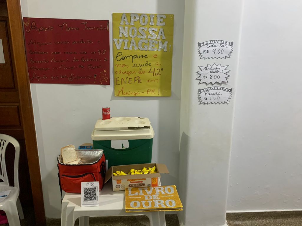 Como parte da campanha de finanças levada a cabo pelos estudantes a fim de garantir sua participação no 42º ENEPe, em Maringá, Paraná, os estudantes também estiveram com uma banquinha vendendo lanches, refrigerantes, água e doces, numa importante atividade de autossustentação.