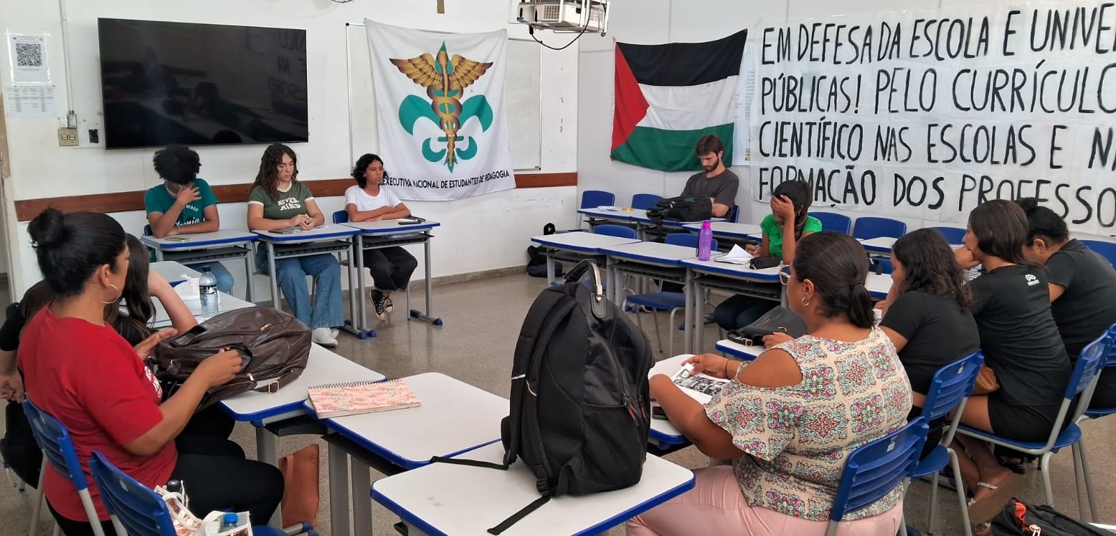 No dia 19 de setembro, a Executiva Mineira dos Estudantes de Pedagogia realizou dois vitoriosos Pós-ENEPes em salas de aula da Universidade Estadual de Montes Claros. Na parte da tarde, o 3º período de pedagogia recebeu uma representante da entidade e estudantes que participaram do evento, que expressaram o conteúdo das mesas e as tarefas imediatas da luta estudantil. Foi apresentada a avaliação sobre a situação política internacional e nacional, a necessidade de lutar pela revogação do “Novo” Ensino Médio (NEM), a luta contra a BNC de Formação e a luta pela greve de ocupação. Haviam mais de 20 pessoas presentes na atividade, entre estudantes de graduação, pós- graduação e a professora da turma.
