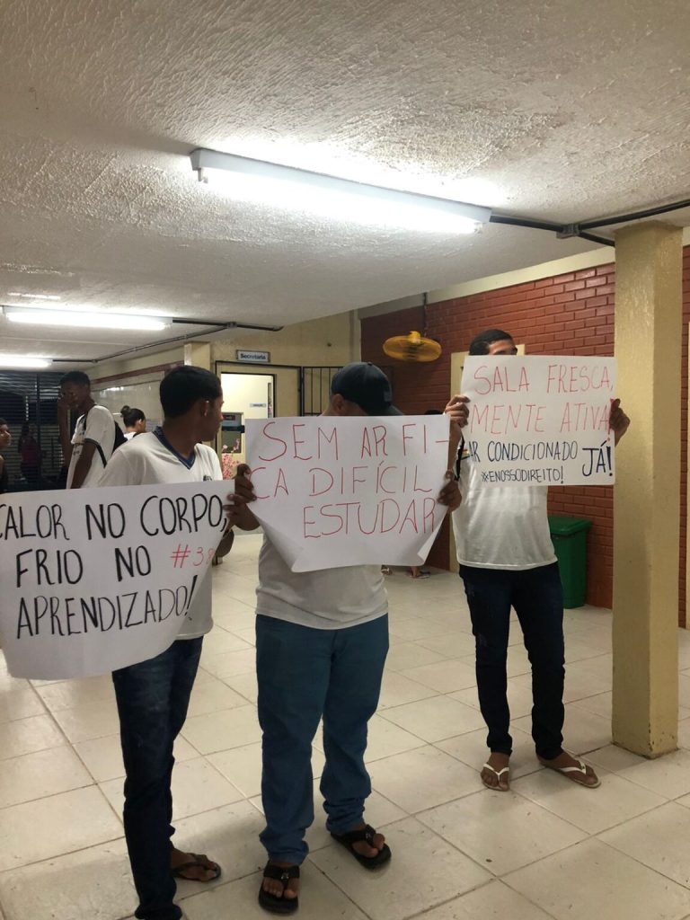Estudantes da escola estadual Núcleo de Moradores 7 do projeto irrigado Nilo Coelho em Petrolina realizaram contundente manifestação reivindicando o uso de sala de aula com ar-condicionado que fica mantida fechada pela gestão da escola. Segundo estudantes a gestão da escola tem “postura autoritária e fascista” chegando mesmo a ameaçar os estudantes com advertências e extensão do horário de aula simplesmente porque eles reivindicam utilizar a sala de aula com o ar-condicionado.