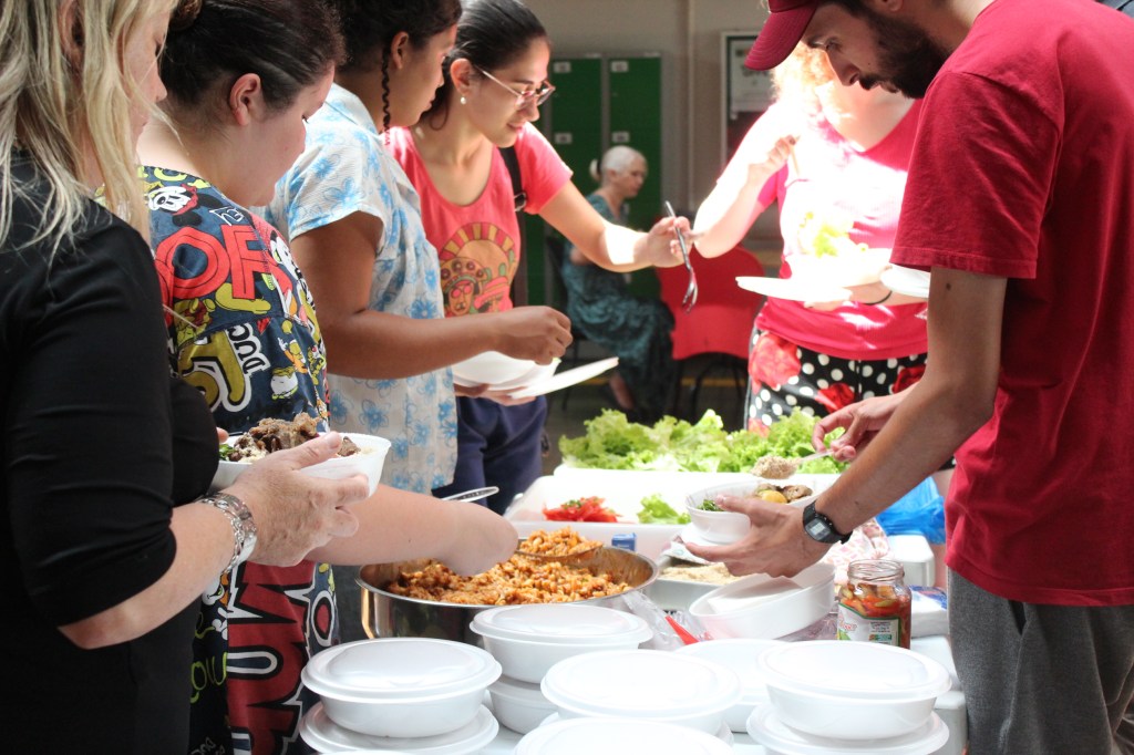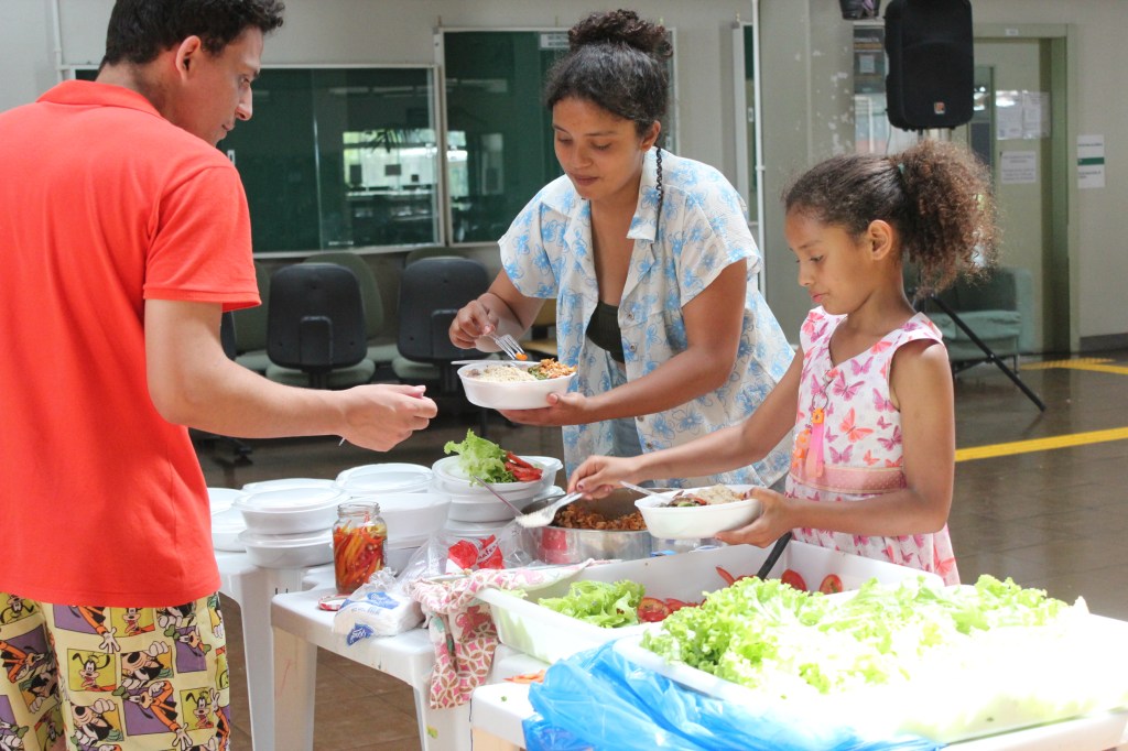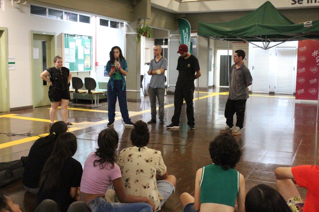 De noite realizamos a janta no espaço da universidade e tivemos atividade cultural com apresentação da peça sobre a Feroz Batalha de Barro Branco, uma apresentação de patins que denunciou o feminicídio e slam com apresentação de poesias autorais.