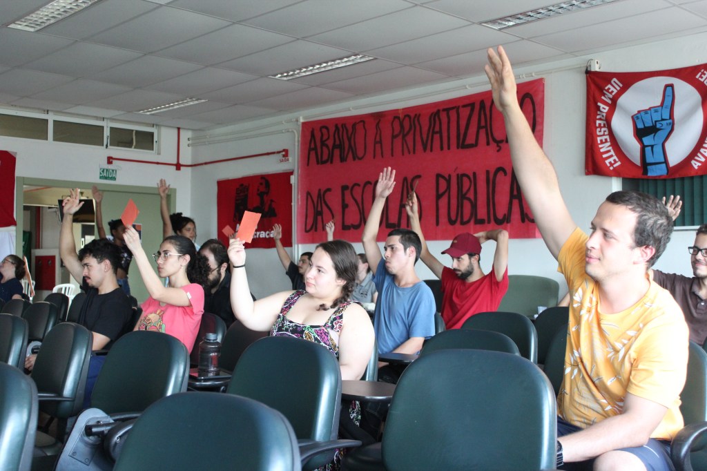 2. Lutar pela desmilitarização completa das escolas e universidades públicas, garantindo o direito à livre associação, reunião e manifestação, sem perseguição política aos estudantes que lutam.