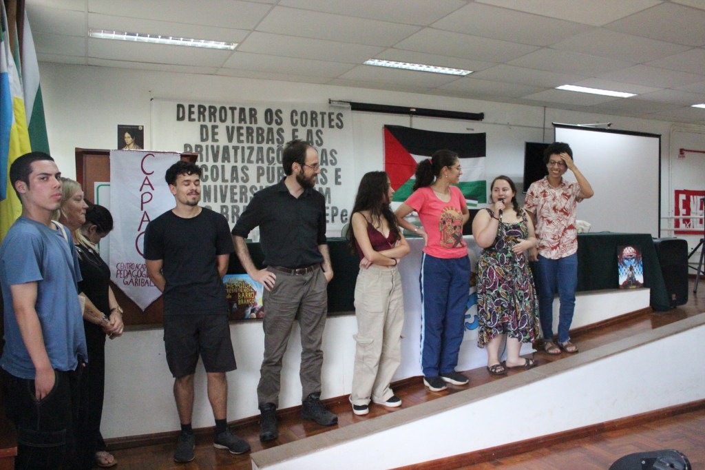 Na plenária final foi apresentado o balanço de um ano da executiva paranaense que ressaltou os aspectos positivos, principalmente pela participação ativa da ExPEPe nas lutas políticas principais a nível estadual e nacional: a luta contra a privatização das escolas, tomando parte na ocupação da ALEP e mobilizando em frente as escolas que seriam privatizadas em Curitiba, Maringá e também em Laranjeiras do Sul, chegando a ter enfrentamento com a SEED que tentou impedir a mobilização; participamos em ocupações na UFPR (PRAE) e na UEM (prédio da Geografia), conquistando compromisso da burocracia universitária; na greve nacional da educação também não foi diferente, estivemos presentes na ocupação do Dom Pedro II na UFPR reivindicando a contratação de professores para o curso de Psicologia, o retorno da dupla habilitação para cursos de outros departamentos, e denuncia dos cortes de verbas; e prestamos importante solidariedade ao povo palestino nos somando aos acampamentos que ocorriam no mundo inteiro, realizando-os na UEM, na UFFS – Laranjeiras do Sul e a própria ocupação do DPII da UFPR.