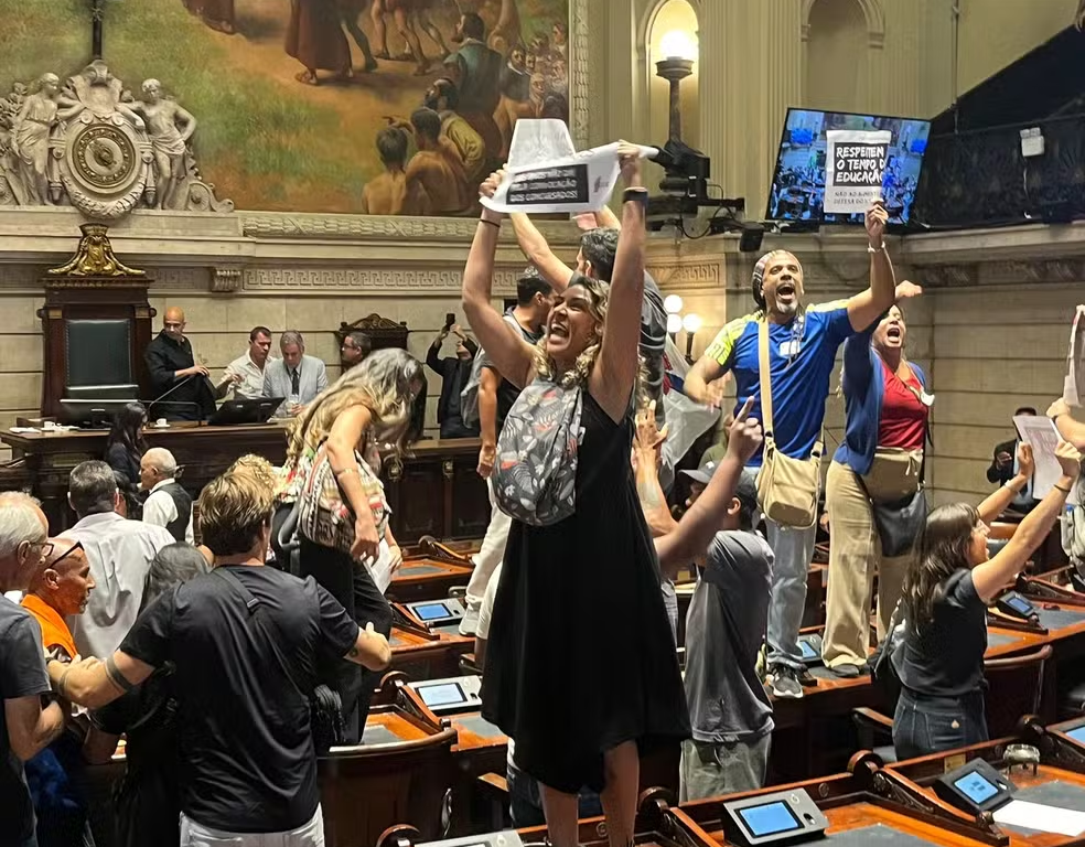 Os trabalhadores têm se mobilizado numa verdadeira jornada de lutas contra o avanço da destruição do ensino público municipal no Rio. Após a primeira assembleia de deflagração da greve realizaram uma manifestação combativa no G20, recebida com truculência pela PM e Guarda Civil que tentaram impedir o avanço dos professores revoltosos até a prefeitura, chegando a haver detenções. Nem a repressão conseguiu parar os trabalhadores, que entraram no Palácio, conseguiram impedir a votação e cancelaram a agenda parlamentar do dia. Na mesma semana entregaram uma petição online com mais de 33 mil assinaturas de profissionais, pais, responsáveis, entidades do movimento civil e integrantes da população em geral da cidade do Rio de Janeiro, contra a aprovação do projeto, garantindo por parte do vereador Carlo Caiado – atual presidente da câmara de vereadores – o compromisso de não incluir o PLC na pauta de votação.